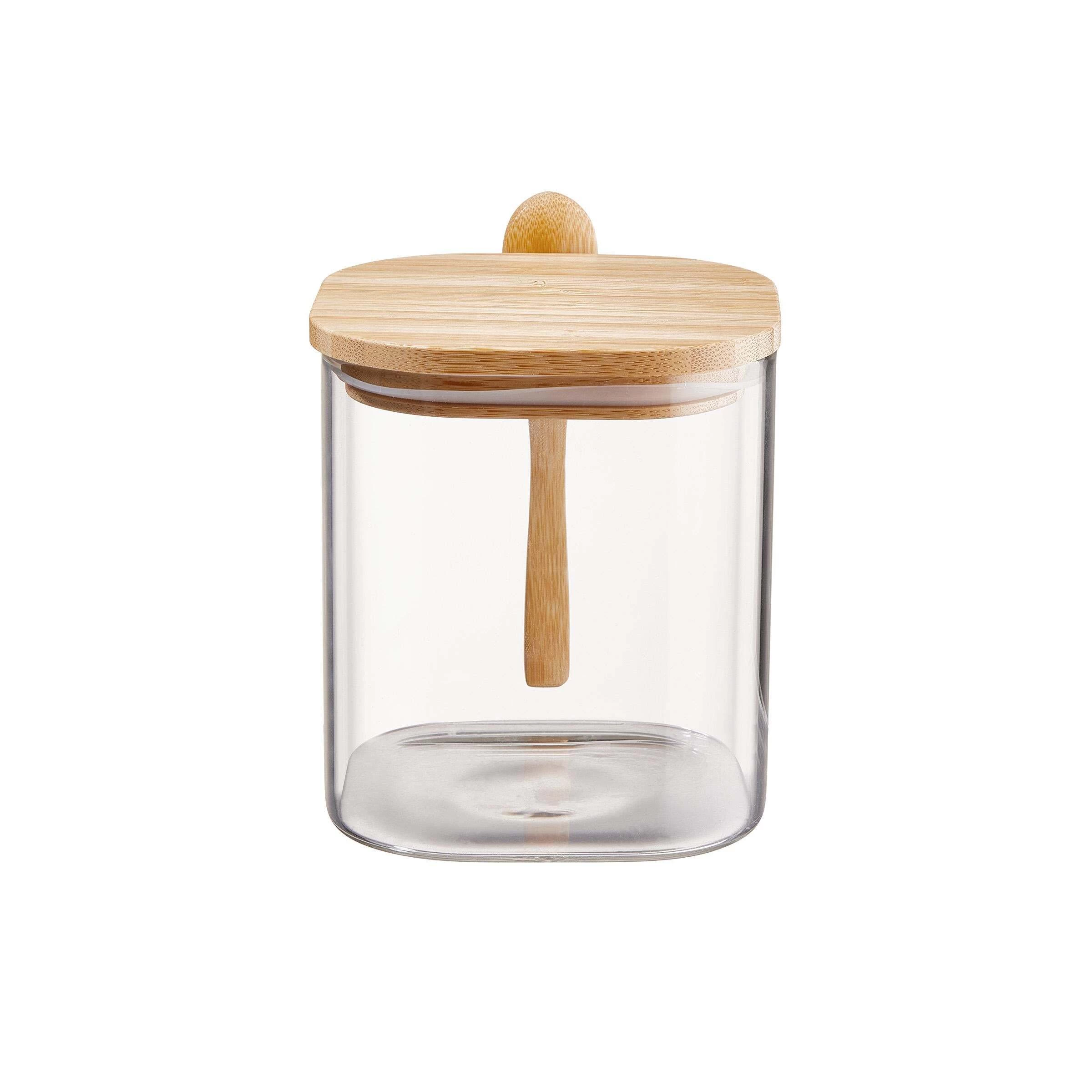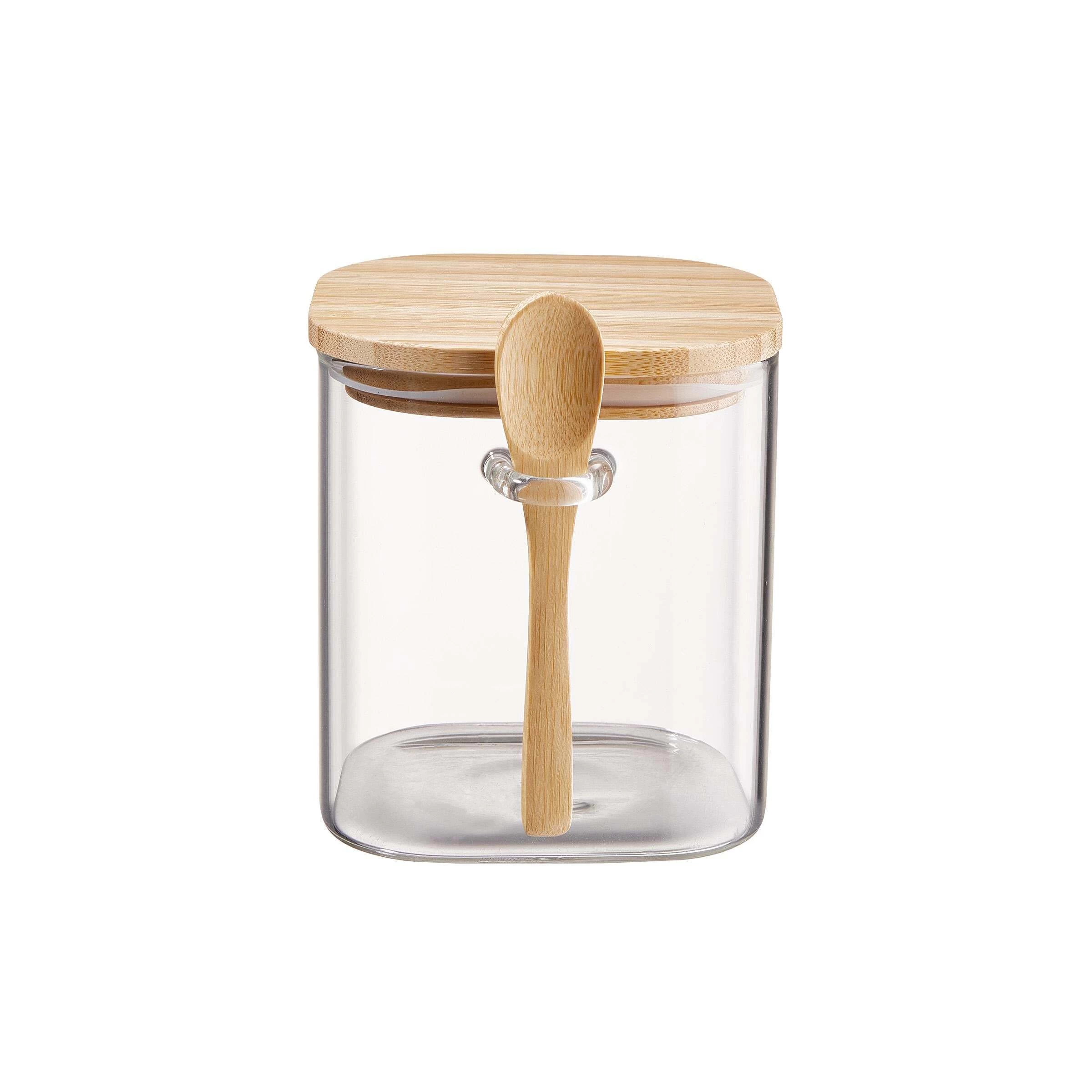 verschließen, und ein Holzlöffel zum Entnehmen hängt direkt am Vorratsglas