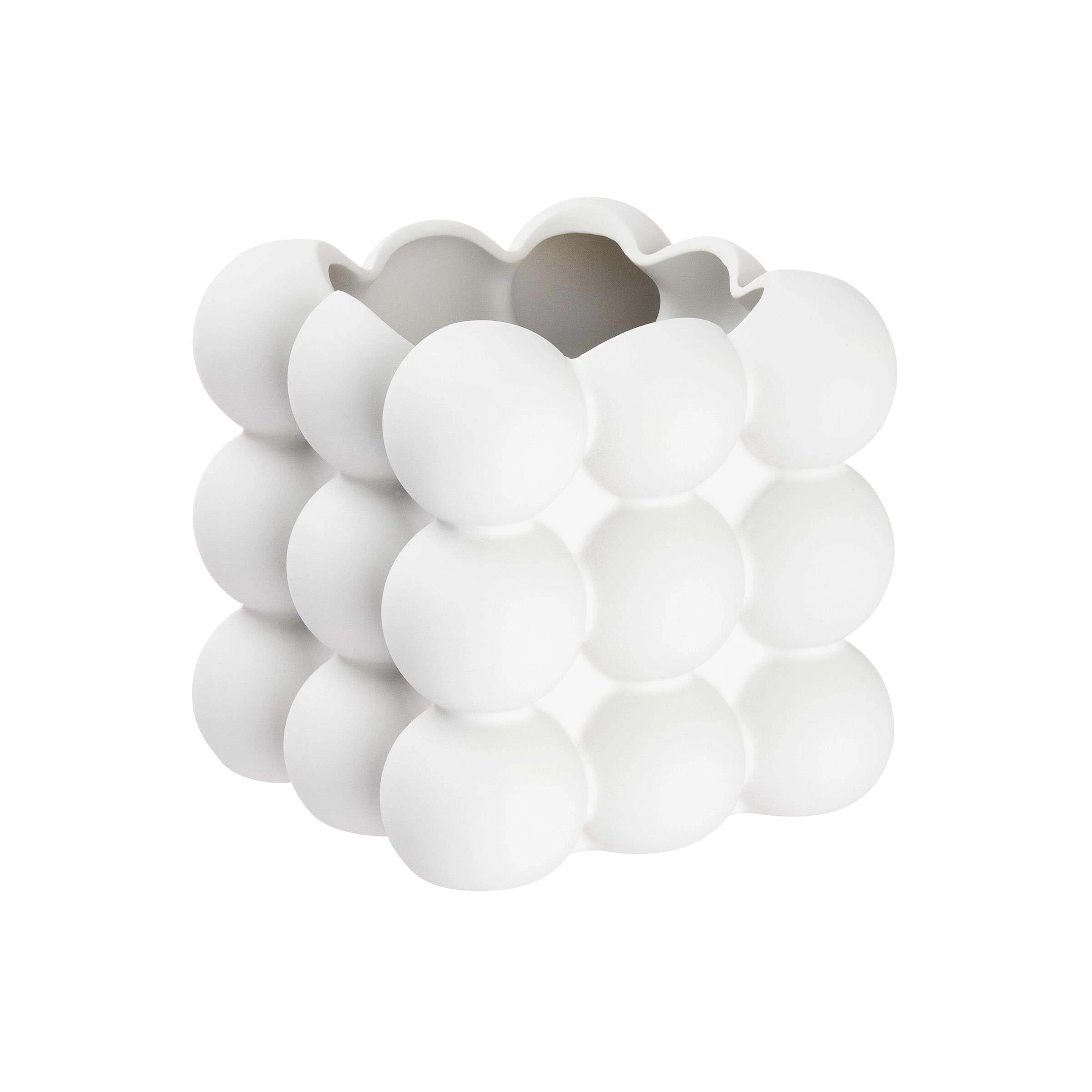 Bei Kerzen lieben wir diese besondere Form, und jetzt ist sie auch als viereckiger Bubble Blumentopf zu haben. Der kleine Blumentopf aus weißem Steinzeug sieht aus, als wäre er aus einzelnen Kugeln zusammengesetzt, und zieht als dekorativer Hingucker die Blicke auf sich, z.B. auf dem gedeckten Tisch.