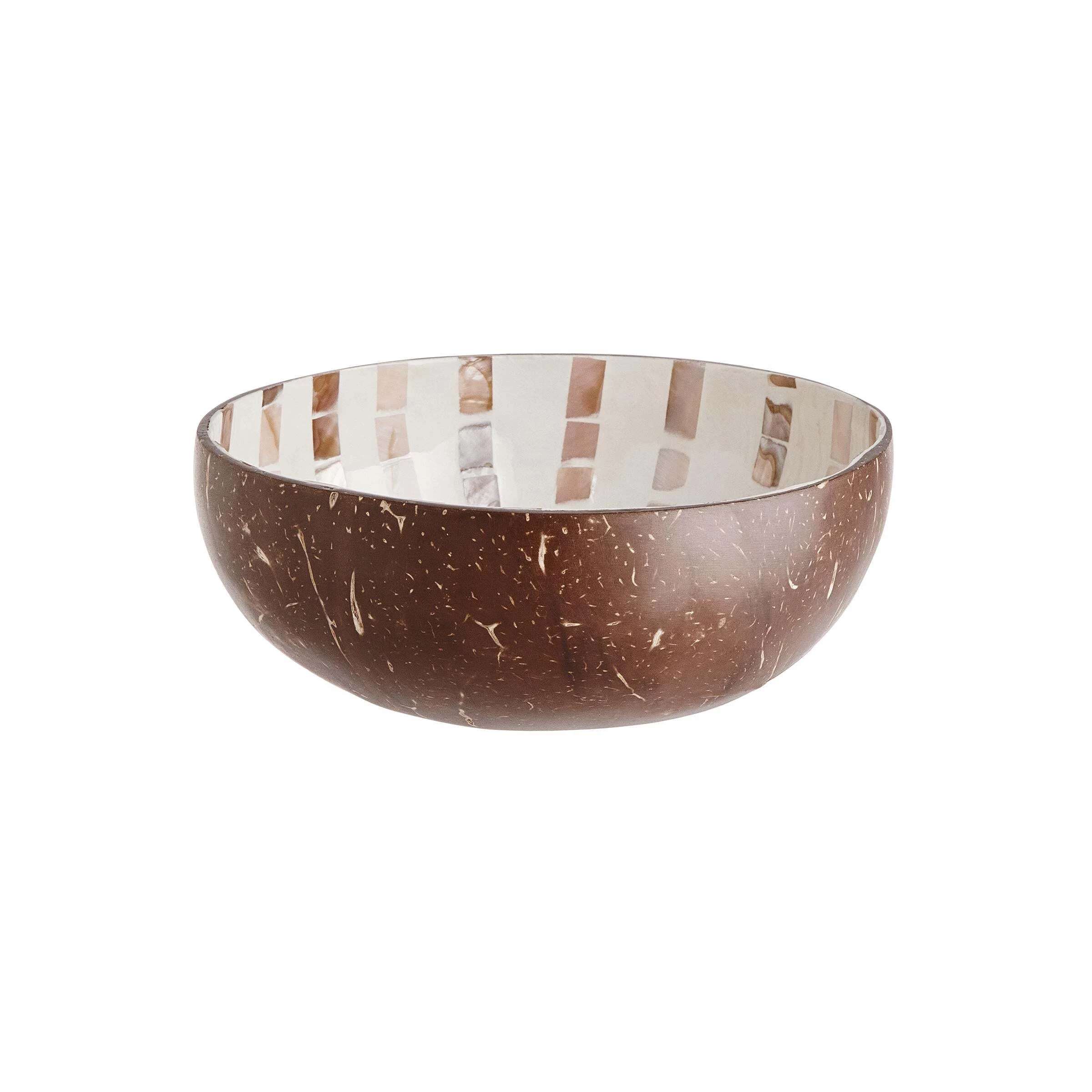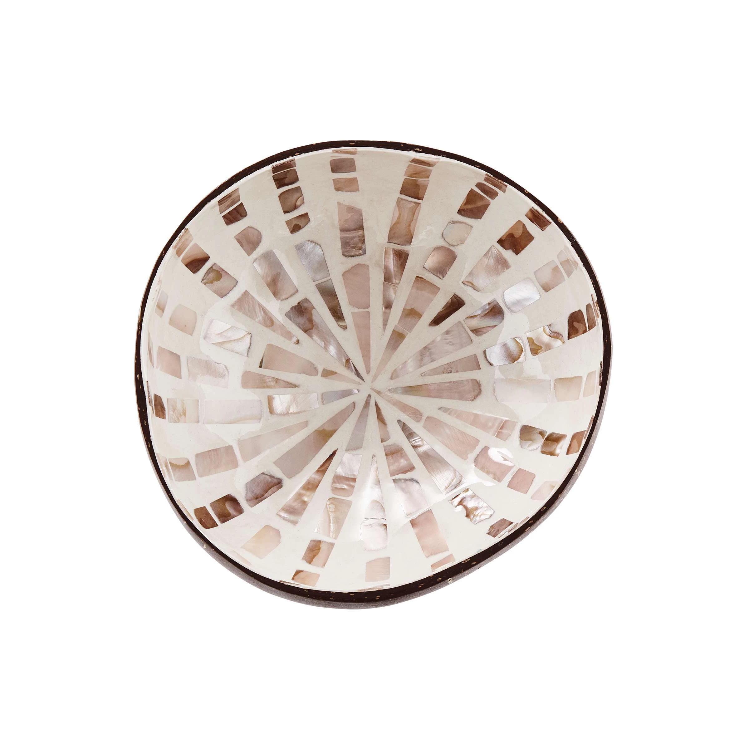 Es sind ausgesuchte Details wie die zierliche Coconut Kokosnussschale Streifen, die Ihrem Zuhause eine besondere Persönlichkeit geben. Diese Dekoschale wurde in Vietnam in kunstvoller Handarbeit gefertigt, aus Perlmutt und Steinpulver ist dabei im Inneren der Kokosnuss ein aufwändiges Ornament entstanden. Das Perlmutt schimmert wunderschön im Licht, sodass es sich anbietet, die Kokosnussschale als Teelicht zu verwenden. Oder Sie nutzen sie zur Aufbewahrung von z.B. Schmuck. Weitere Varianten erhältlich.