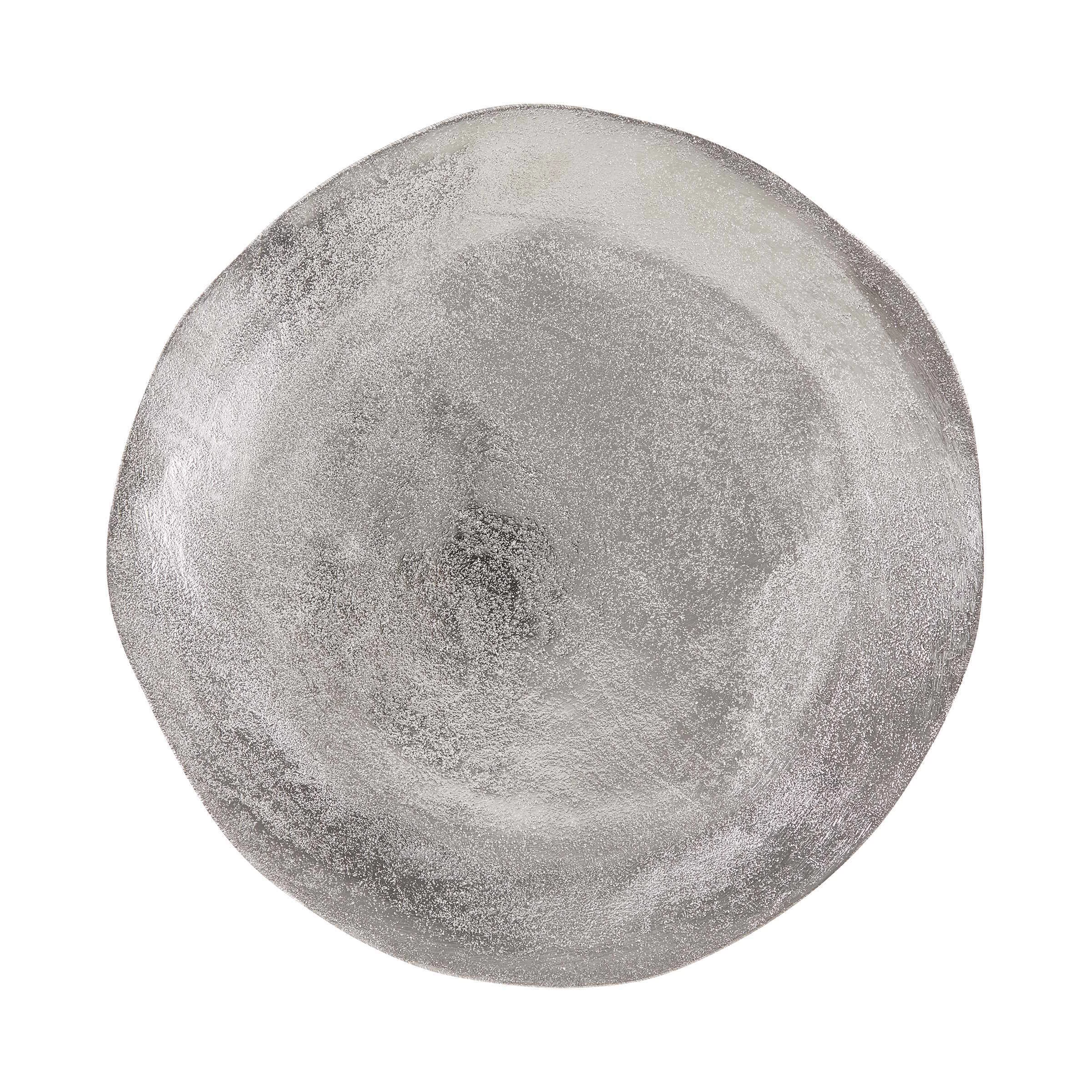 Aus einem früheren Jahrhundert könnte der Banquet-Teller Ø 32 cm mit seiner glänzenden und strukturierten Oberfläche stammen. Und genau wie damals verschönert er die Tafel und den Raum mit seiner organischen Form. Aus vernickeltem Aluminium, mit Softpads an der Unterseite.