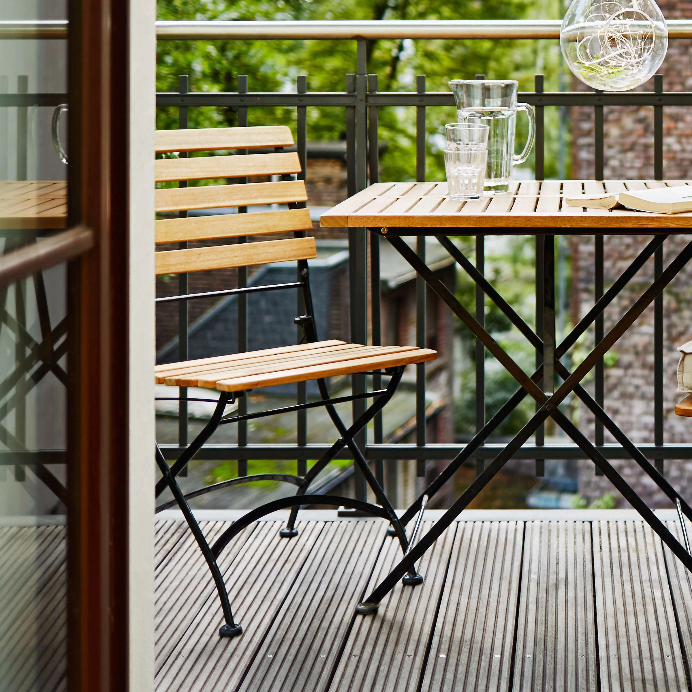 Klappbare Gartenmöbel wie das 3-teilige Parklife Gartenmöbel-Set mit Tisch und vier Stühlen sind einfach unschlagbar. Wenn Sie morgens und nachmittags in der Sonne sitzen wollen. Wenn Sie zwischendurch Platz für eine Partie Croquet brauchen. Oder wenn Ihr Schuppen bzw. Ihre Garage kleiner ist als ein Flugzeughangar. Und wenn Sie das Wegklappen mal vergessen – die wetterfesten Outdoor-Möbel sind nach handwerklicher Tradition aus geöltem Akazienholz und verzinktem Metall gefertigt und trotzen auch mal einem kleinen Schauer.