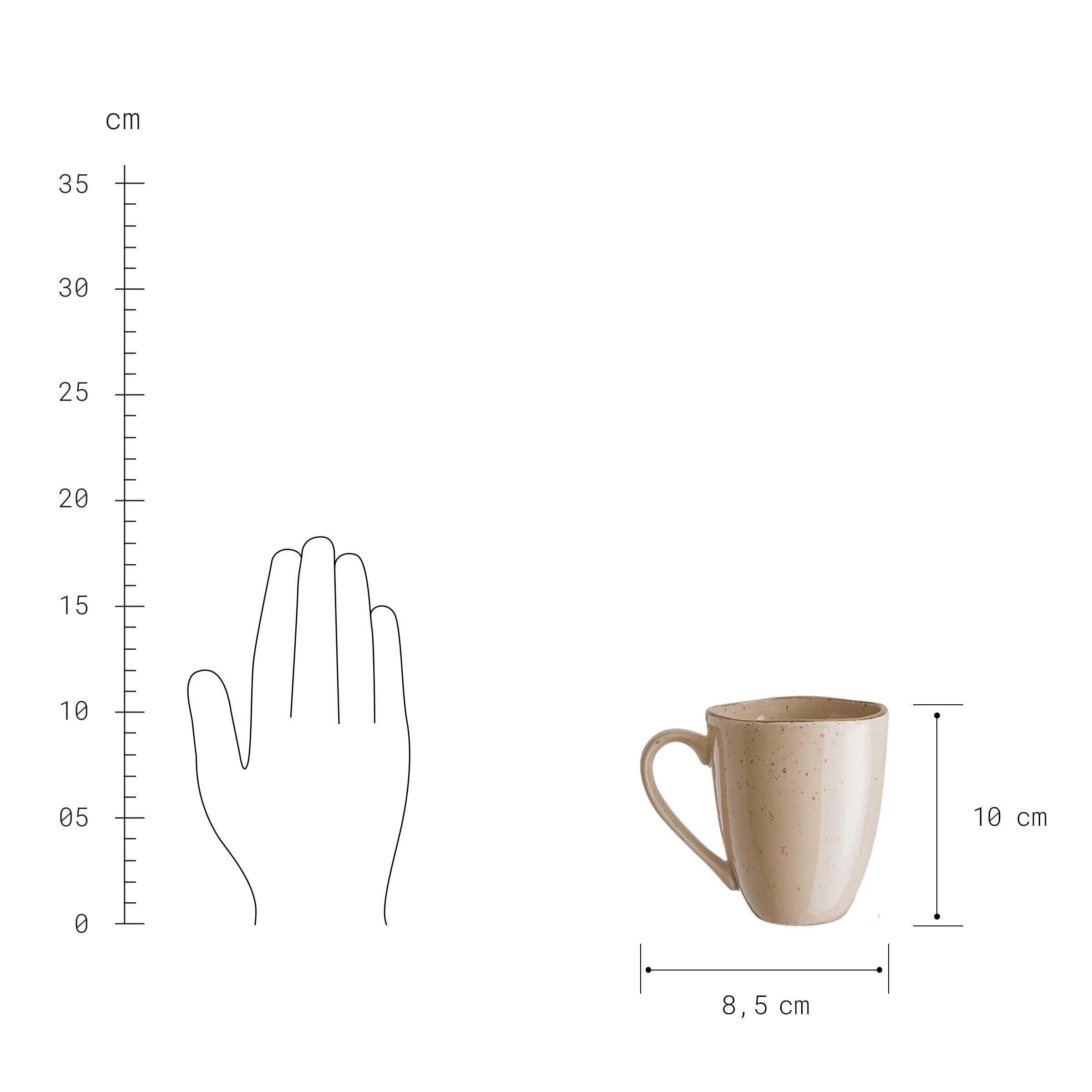 Dinnerteller: Länge 27 x Breite 21 x Höhe 3 cm, Frühstücksteller: Länge 23 x Breite 17 x Höhe 2 cm, Schale: Länge 21 x Breite 16,5 x Höhe 5 cm, Füllmenge: 500 ml, Tasse: Ø 8,5 cm, Höhe 10 cm, Füllmenge: 300 ml