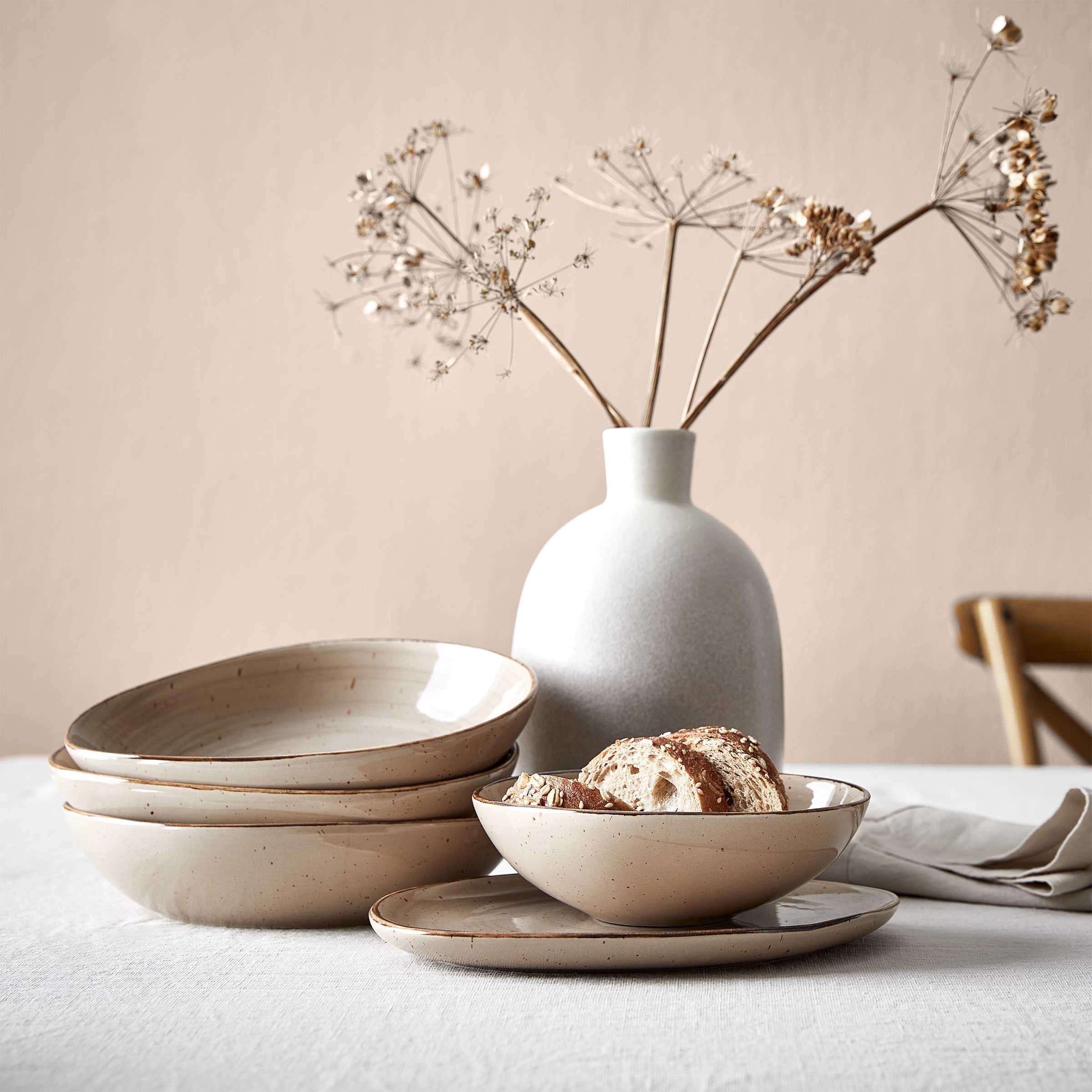¡que bonito! Der hochwertige Handmade Look des 16-teiligen Finca Geschirrsets aus Porzellan fällt sofort ins Auge. Kein Wunder: Die reaktive Glasur mit natürlichen Sprenkeln, die authentische Form und die Vintage Optik erinnern an echtes Handwerk, wie man es nur noch in alten Manufakturen findet. Damit ist Finca kein Geschirr „von der Stange“, sondern deckt Ihren Tisch mit individuellen Schmuck- und Sammlerstücken.