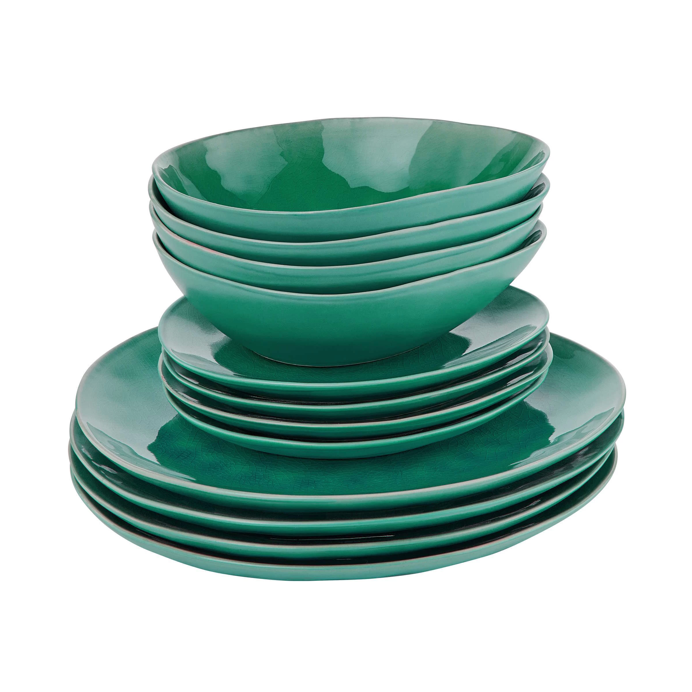 Zurück zur Natur: Unser 12-teiliges De La Roya Geschirrset zum Dinner aus Steinzeug ist von organischen Formen, von Blättern und Pflanzen inspiriert. Und das inspiriert Sie dazu, zu Hause mal etwas ganz Neues auf den Tisch zu bringen.