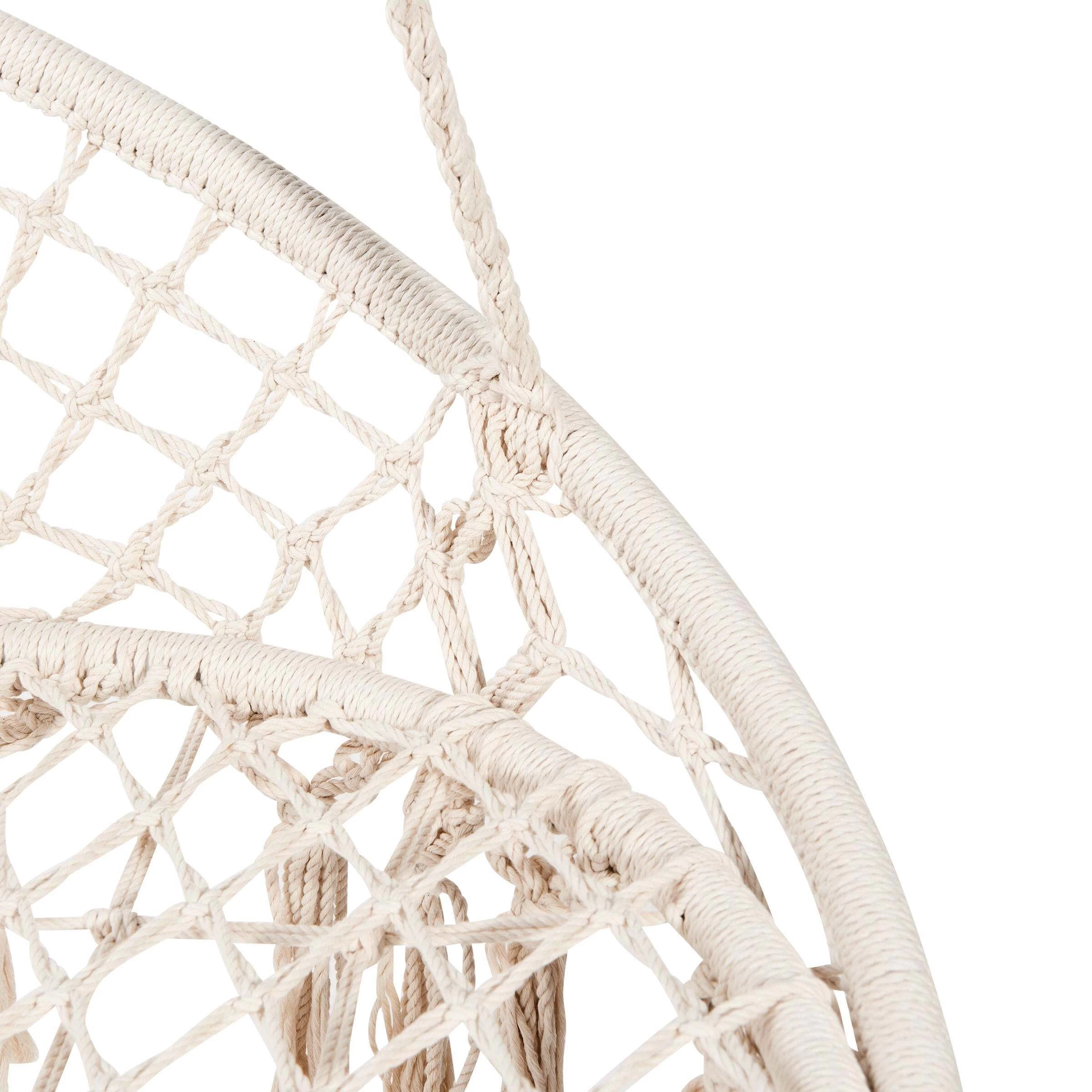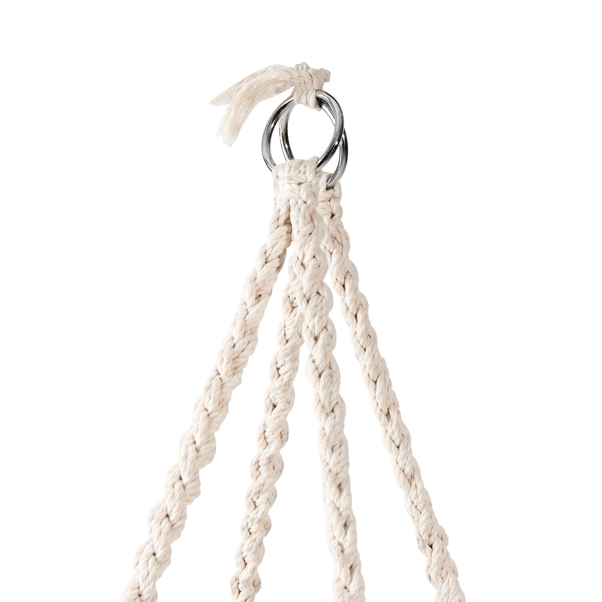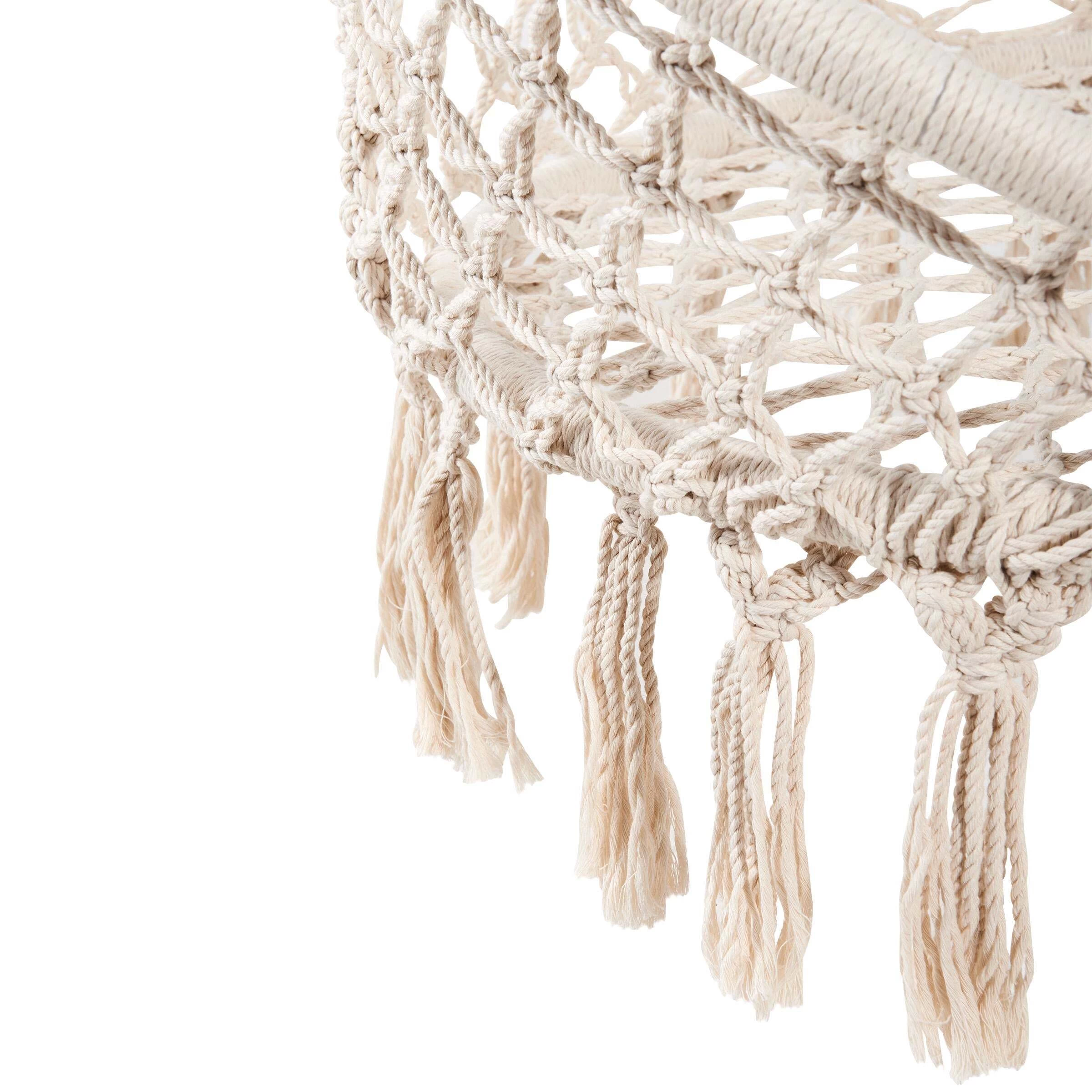 – Der Sitz zum Aufhängen ist aus heller Baumwolle, Polyester und Stahl.