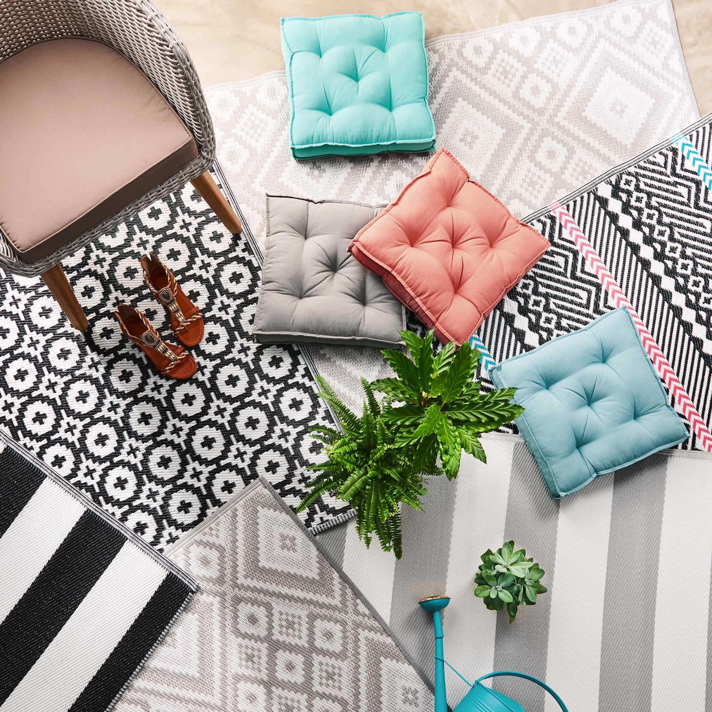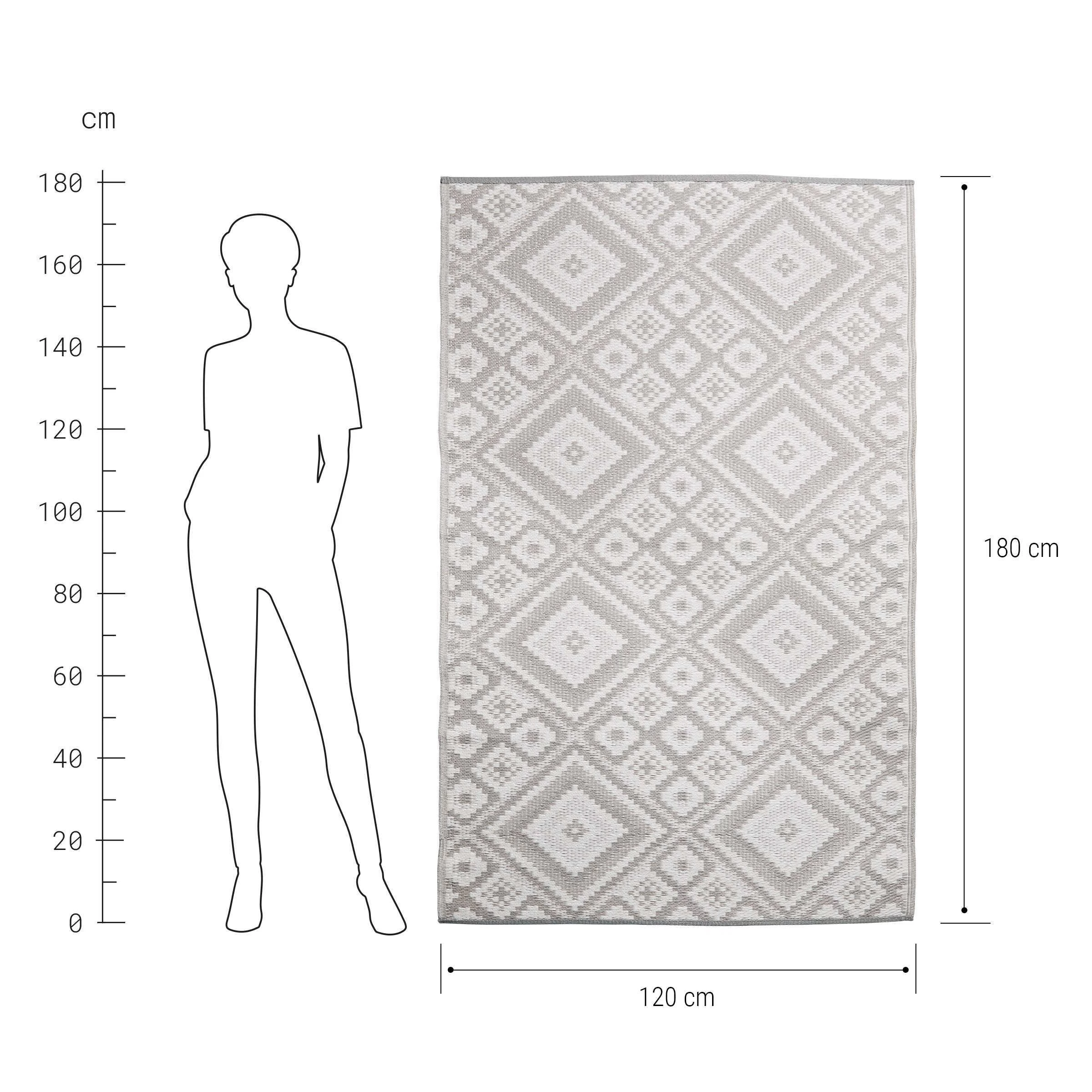 Weil Sie auf wohnlich und zugleich pflegeleicht stehen, legen Sie sich den modernen Colour Clash Outdoorteppich mit grauem Ethno-Muster und Bastteppich-Struktur zu Füßen. Und das nicht nur auf Ihrem Balkon oder Ihrer Terrasse, sondern gerne auch indoor im Wohnbereich. So läuft es sich drinnen wie draußen spürbar angenehm. Aus robustem Kunststoffgewebe, UV-beständig.