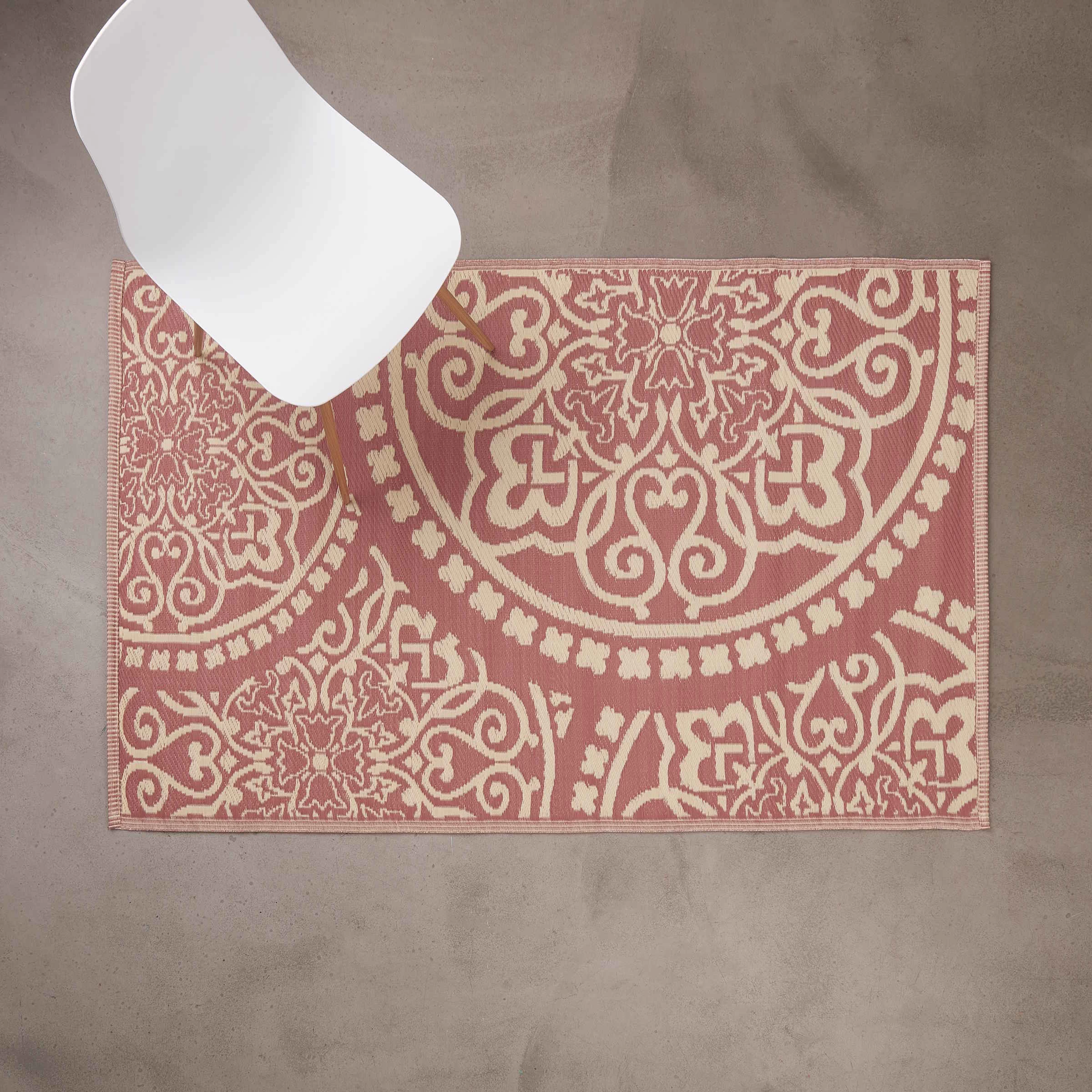 In- & Outdoor-Teppich Floral L 180 X B 118cm COLOUR CLASH In Hellrot-Creme