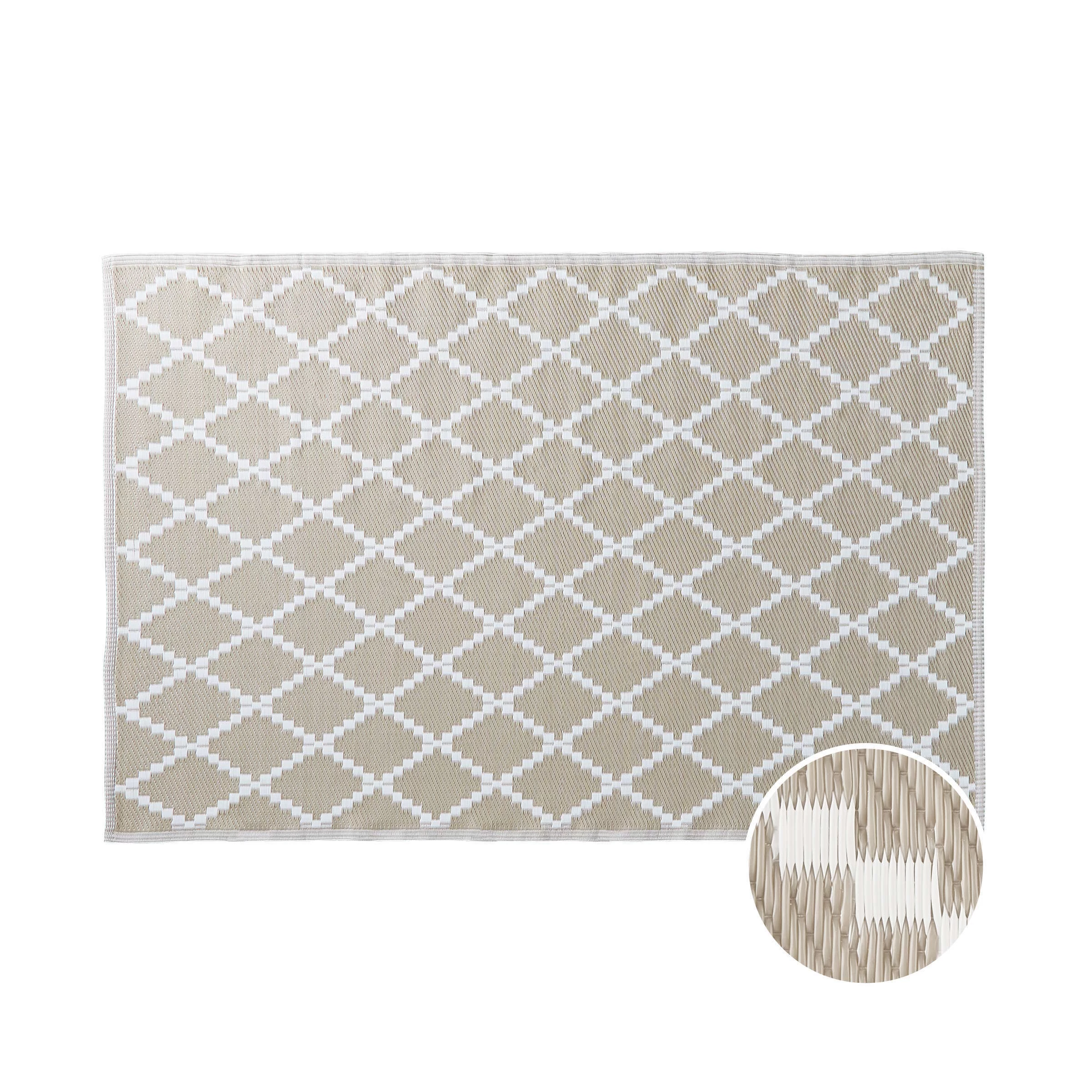 Weil Sie auf wohnlich und zugleich pflegeleicht stehen, legen Sie sich den modernen Colour Clash Outdoorteppich mit natur-farbenem Rauten-Muster und Bastteppich-Struktur zu Füßen. Und das nicht nur auf Ihrem Balkon oder Ihrer Terrasse, sondern gerne auch indoor im Wohnbereich. So läuft es sich drinnen wie draußen spürbar angenehm. Aus robustem Kunststoffgewebe, UV-beständig.