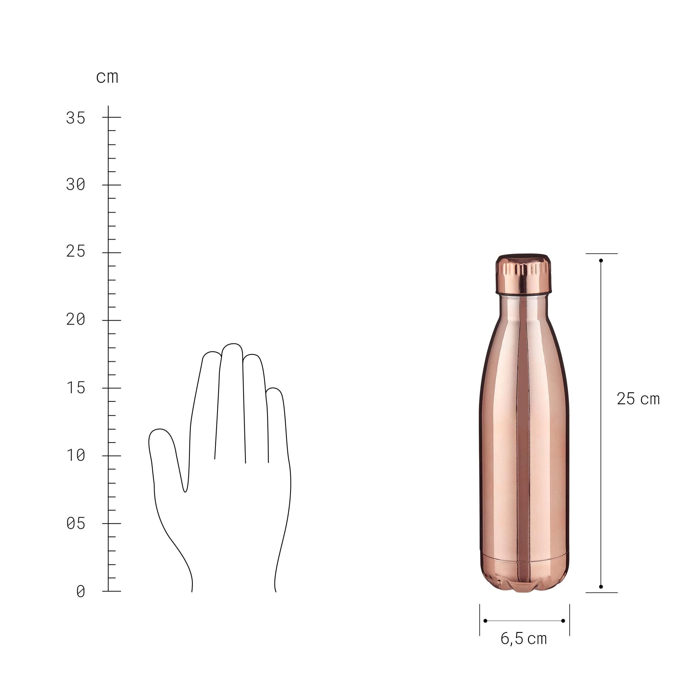 Die trendige To Go Edelstahl-Isolierflasche 500 ml begleitet Sie beim Biken und Hiken, zum Workout und ins Bootcamp, damit Sie immer ein erfrischendes Getränk für den Sportlerdurst dabei haben. Tipp: Aus säurearmen Fruchtsäften (z. B. Birne oder Mango) und natriumreichem Mineralwasser im Verhältnis 1/3 eine Schorle mixen. Weitere Varianten erhältlich.