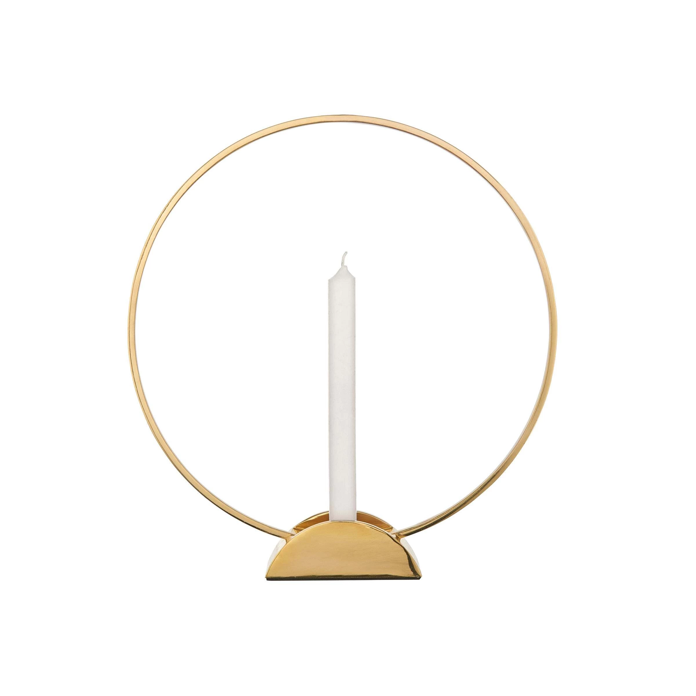 Beim exklusiven Luna Kerzenhalter in Gold unterstreicht echtes Messing die elegante Form. Das hochwertige Metall rostet nicht und verfügt über eine solide Stabilität. Besonders geschätzt werden auch sein kostbarer Glanz und die charakteristische Patina, die Messing im Laufe der Zeit ansetzt, sofern man es nicht poliert. In einer weiteren Größe erhältlich, ideal auch zum Kombinieren.