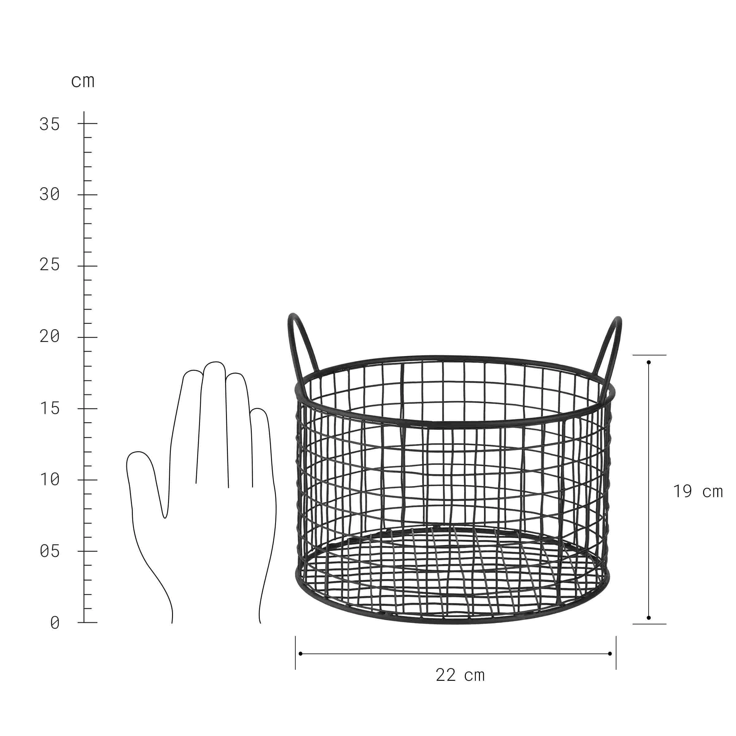 Ordnung kann so chic aussehen mit dem runden Hoop Korb aus Metall. Der trendige Korb mit Griffen räumt z.B. im Wohnzimmer mit Fernbedienungen und Ladegeräten, mit Flur mit Briefen und Schlüsseln und im Badezimmer mit Fläschchen und Tuben auf. In zwei Größen und in Schwarz und Gold erhältlich.