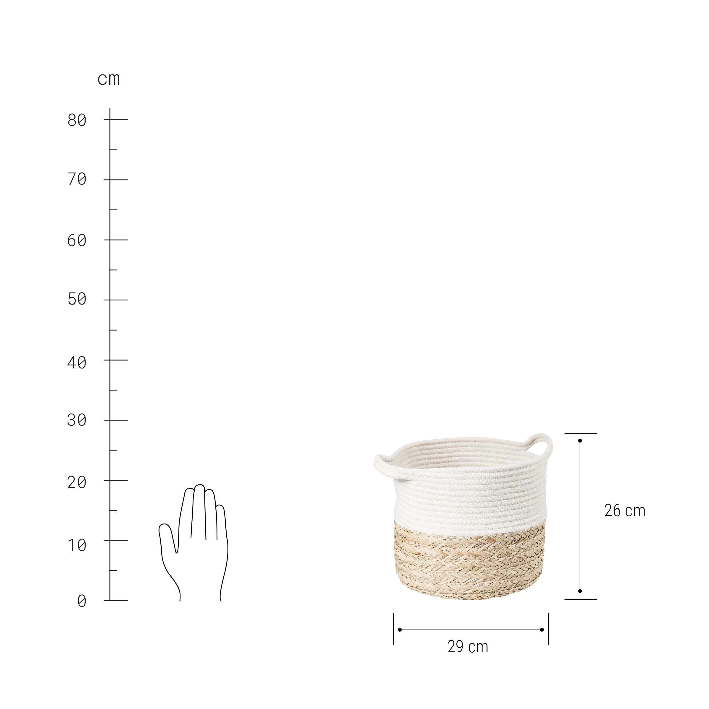 Oben weiß, unten natur – der Basic Braid Seegras-Korb 26 cm macht Ordnung halten, Sortieren, Verstauen und Aufbewahren noch viel schöner. Mit Griffen. Weitere Größen und Varianten erhältlich.