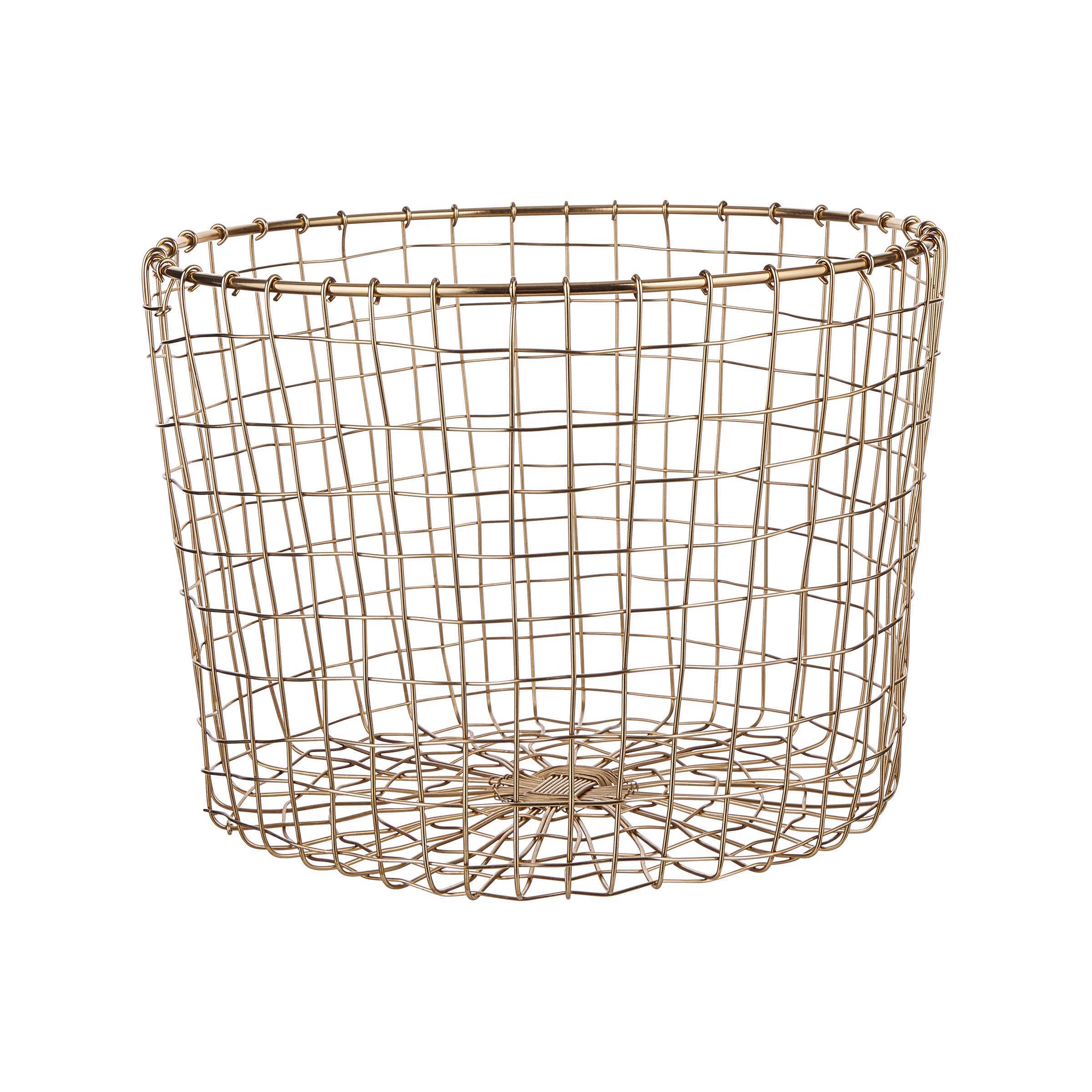 Elegant und modern ist er, der stilvolle Grid Metallkorb in Gold. Der edle Drahtkorb aus filigranen Eisenstreben ist ein echter Allrounder für Zuhause. Mit einem Durchmesser von 32 cm ist der stabile Korb zur Aufbewahrung von Zeitschriften und Zeitungen oder als stilvoller Papierkorb fürs Arbeitszimmer vielseitig einsetzbar. Ist Ihnen dieses Schmuckstück zu schade um es für Altpapier zu verwenden, macht der Korb auch als Deko-Highlight eine tolle Figur. Die leicht ungeraden Eisendrähte verleihen jedem Korb einen ganz individuellen Look, sodass er auch einen einzigartigen Übertopf für kleine Grünpflanzen abgibt. Auf den Geschmack gekommen? Der dekorative Eisenkorb ist auch noch in weiteren Größen erhältlich.