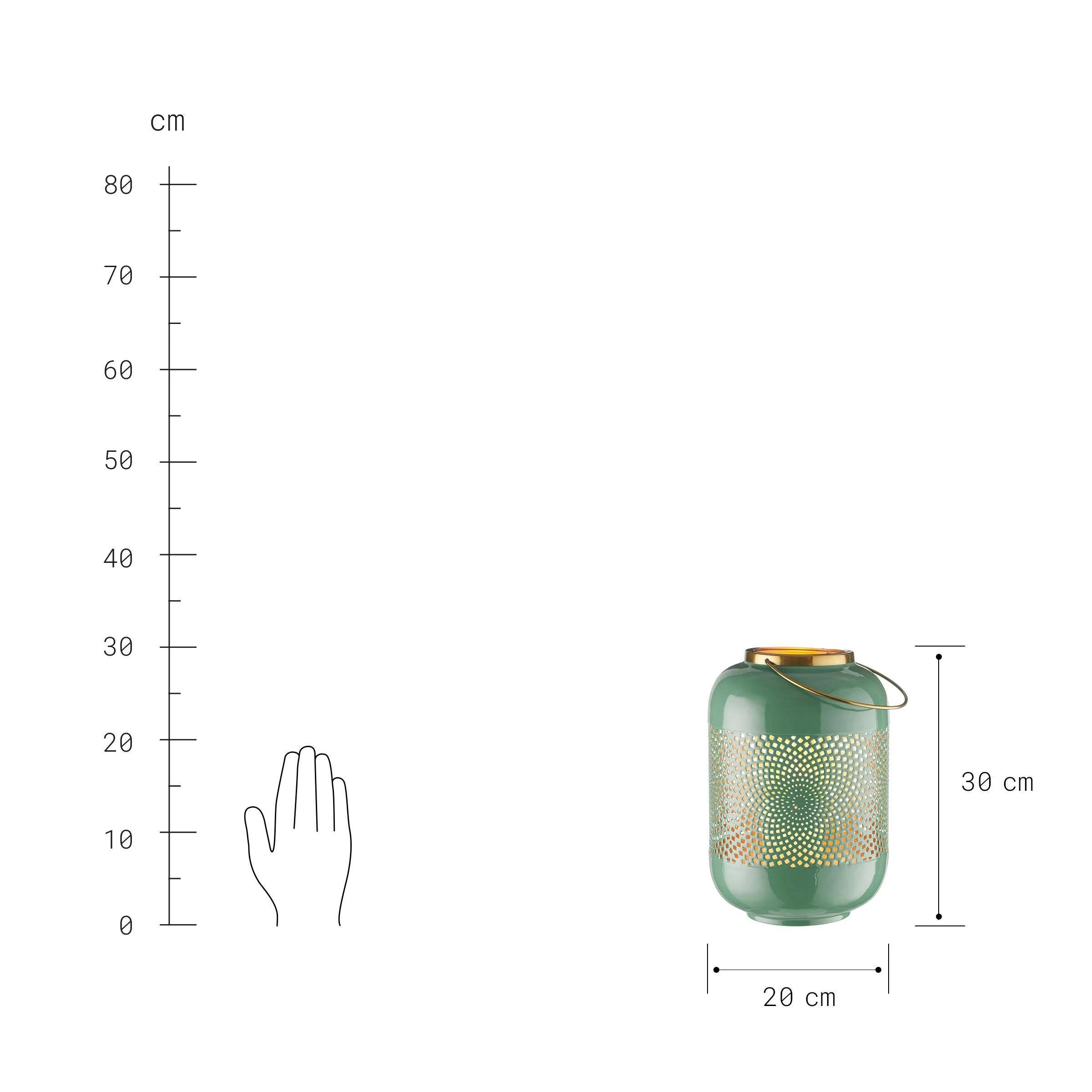 Metallische Effekte und durchbrochene Ornamentik: Als stylische Deko-Queen lässt es die Emilie Metall Laterne so richtig funkeln in Ihrem Zuhause, zum Beispiel auf Regal, Anrichte oder Sideboard. Oder Sie nehmen die schöne Laterne abends mit auf Balkon oder Terrasse und genießen gemeinsam romantische Stunden.