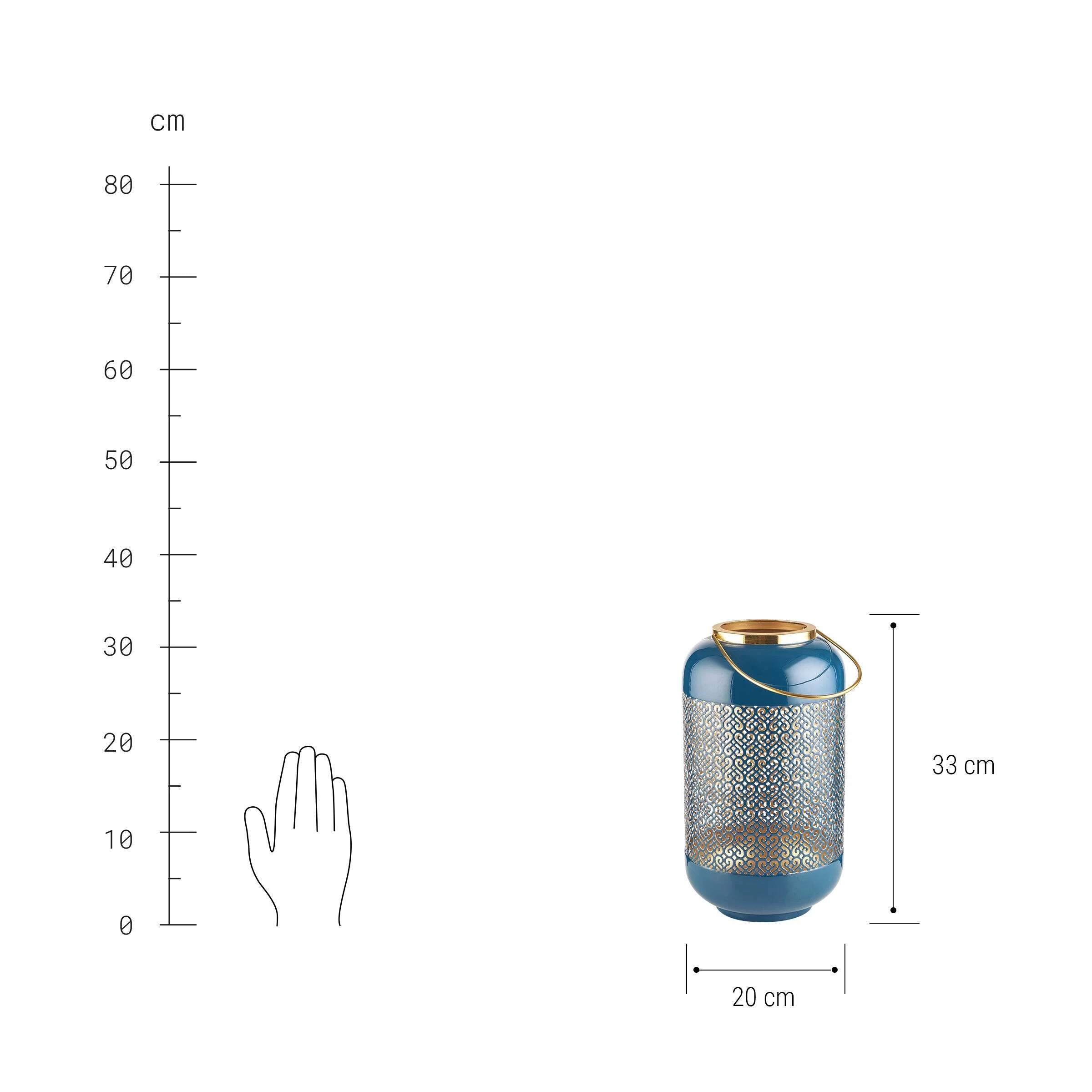 Metallische Effekte und durchbrochene Ornamentik: Als stylische Deko-Queen lässt es die Emilie Metall Laterne so richtig funkeln in Ihrem Zuhause, zum Beispiel auf Regal, Anrichte oder Sideboard. Oder Sie nehmen die schöne Laterne abends mit auf Balkon oder Terrasse und genießen gemeinsam romantische Stunden.