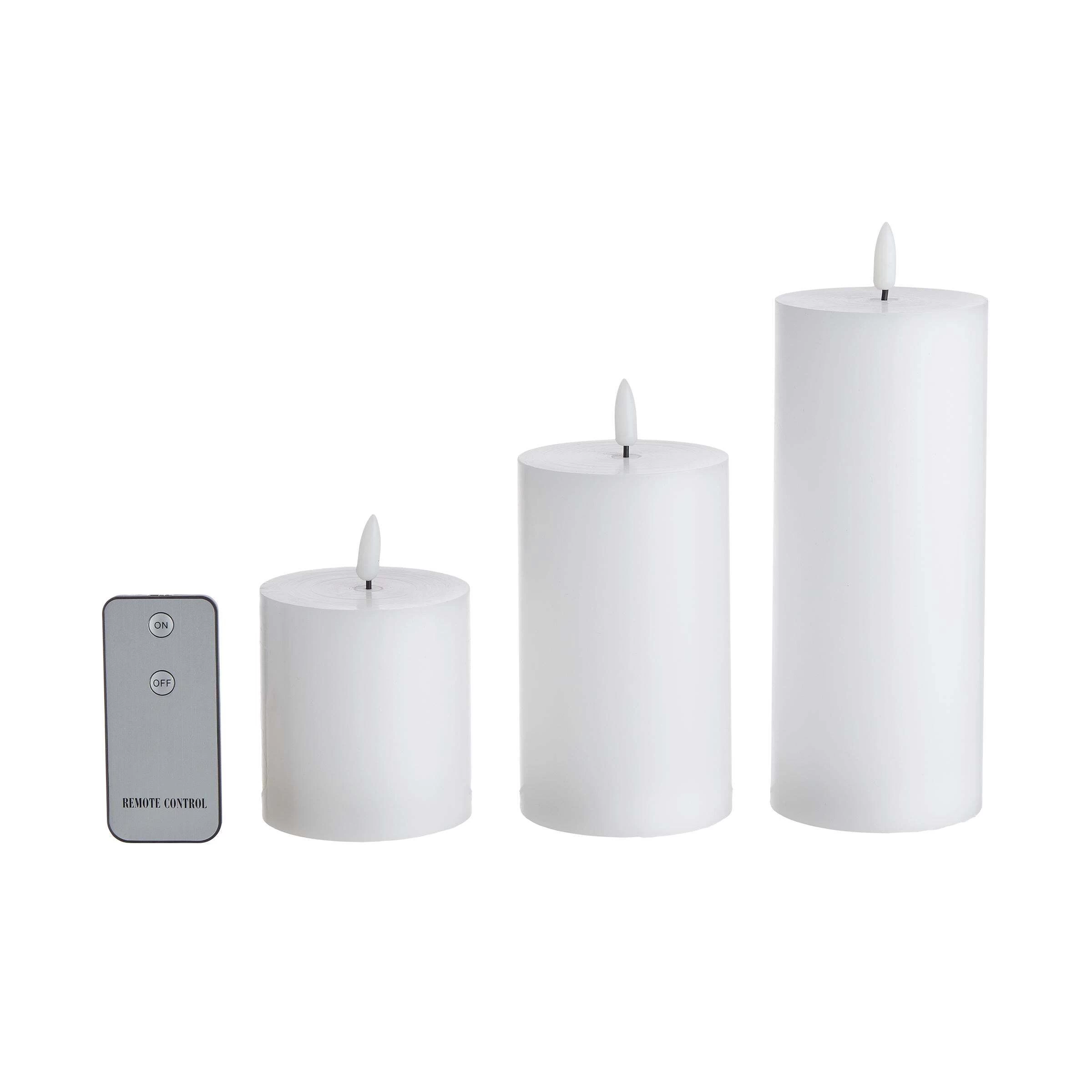 Auf brennende Kerzen sollte man immer ein wachsames Auge haben. Entspannter geht`s mit dekorativen Nordic Light LED-Kerzen (3er Set, unterschiedliche Größen): Ohne offene Flamme flackern sie dauerhaft schön – auch bei Zugluft und dort, wo Sie keine echten Kerzen anzünden können. Einfach die batteriebetriebenen LED Kerzen mit der Fernbedienung einschalten – und schon genießen Sie den stimmungsvollen Kerzenschein-Effekt.