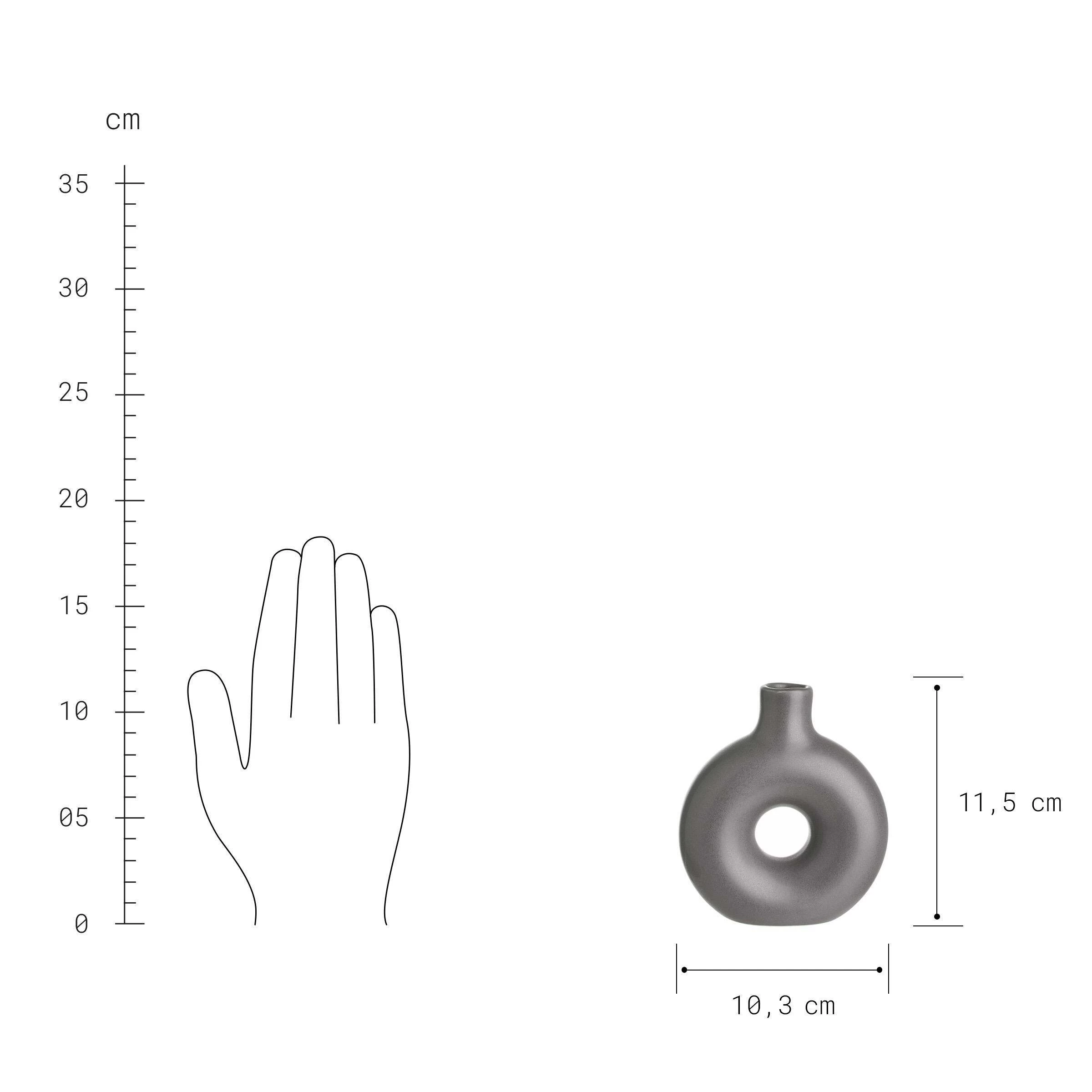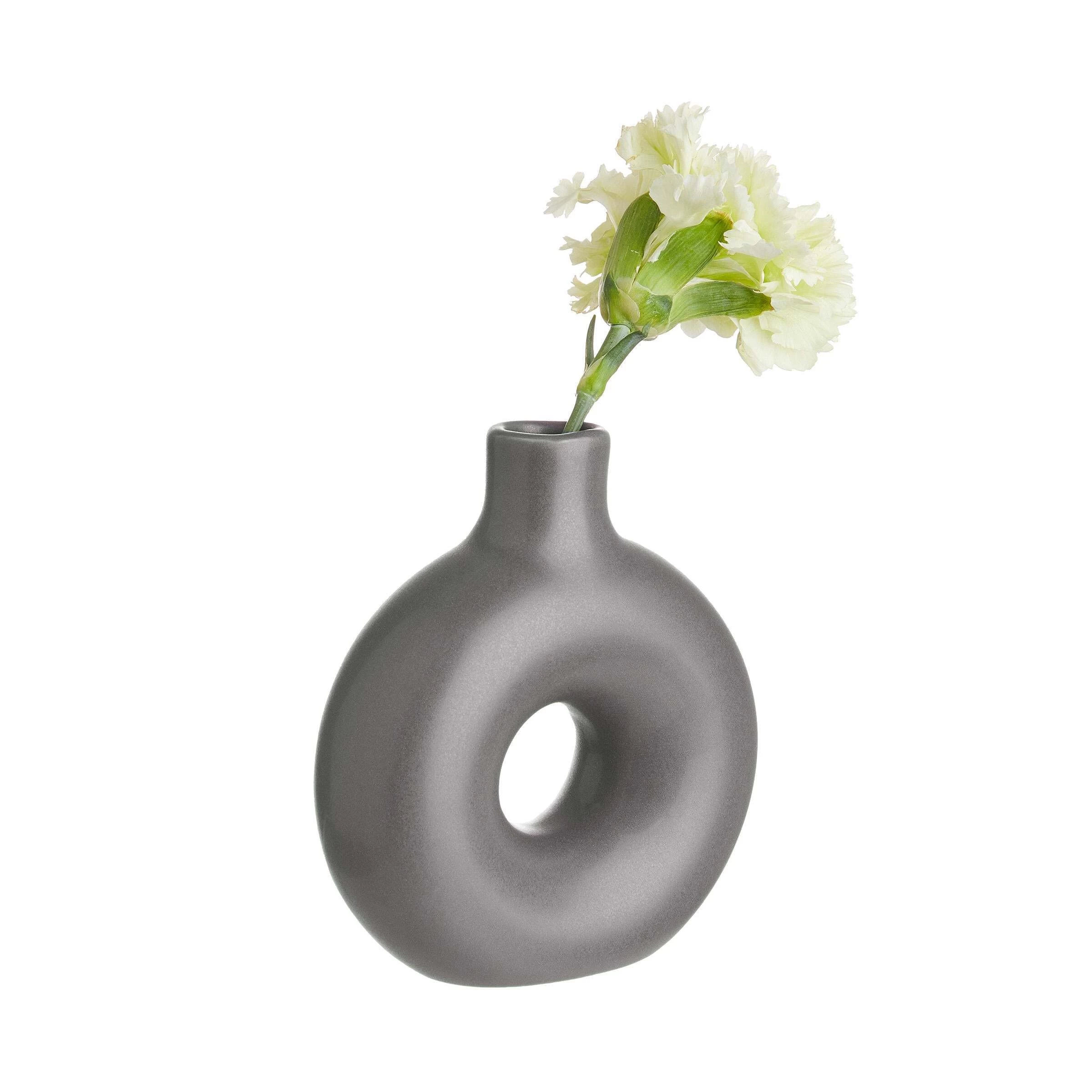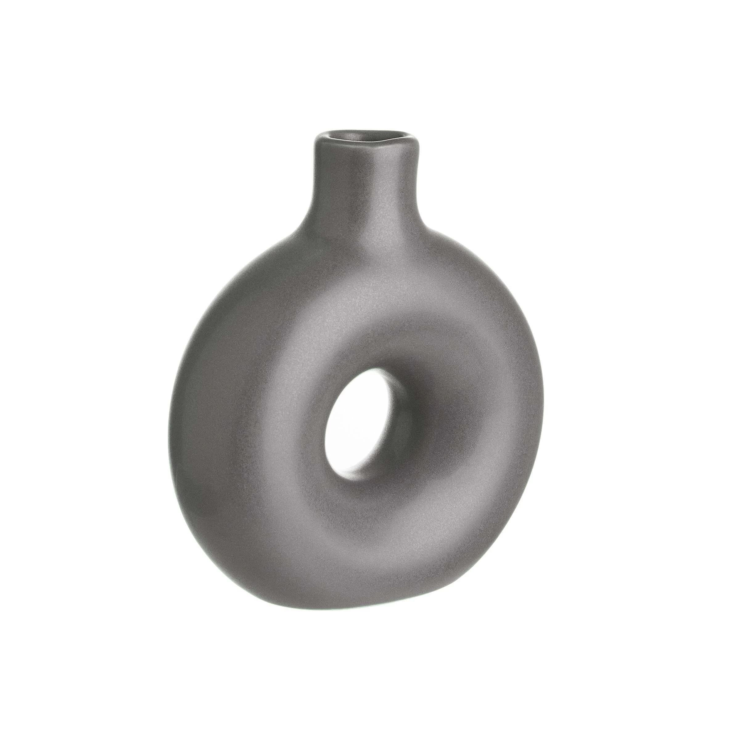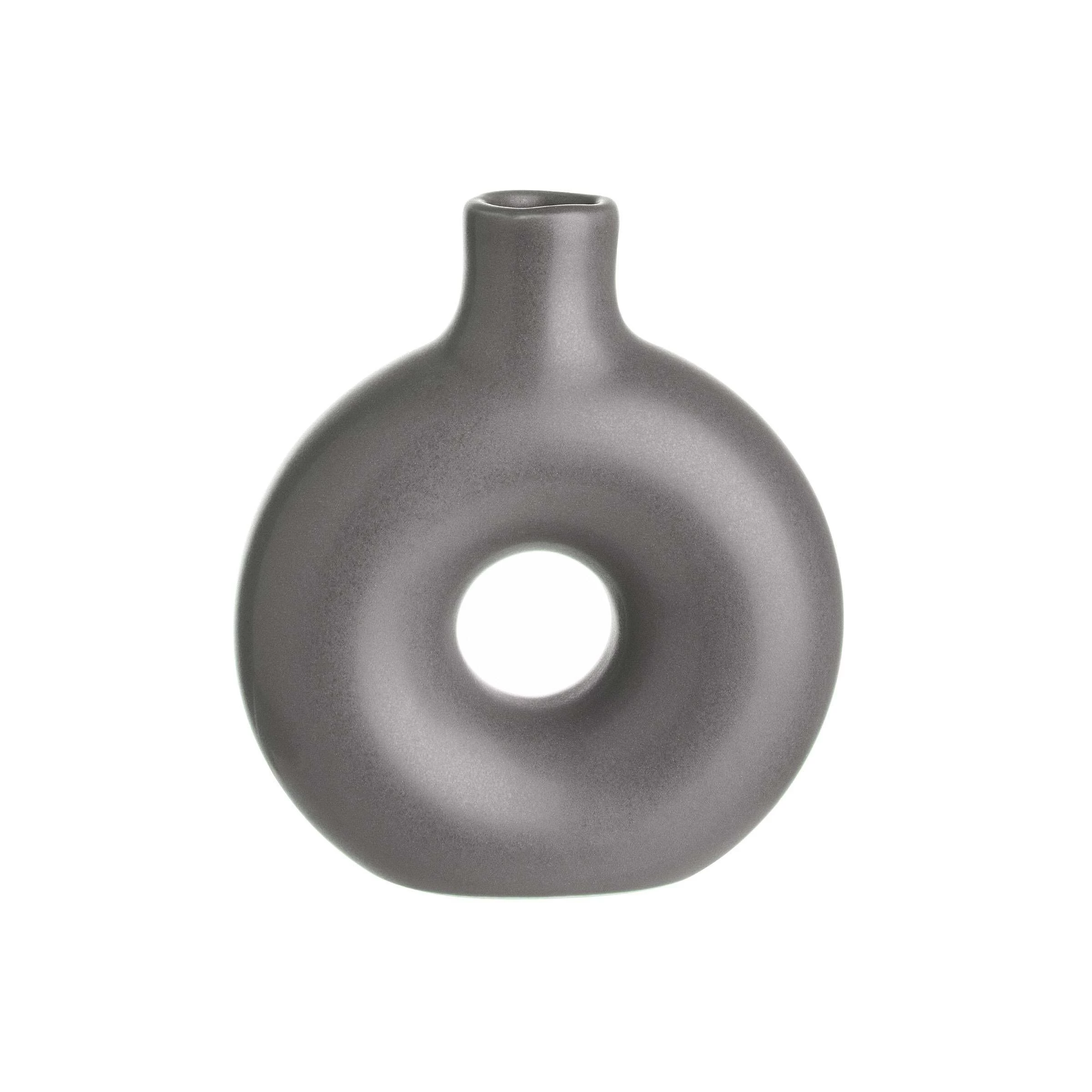 Wenn eine bestimmte Vasenform gerade in keinem modernen Zuhause fehlen darf, dann diese: Die Loopy Mini Vase erinnert ein wenig an einen Donut, und vielleicht finden wir sie genau deshalb so süß. Als kleine Keramik-Vase eignet sie sich ideal, um z.B. auf dem gedeckten Tisch oder auf einem Deko-Tablett Akzente zu setzen, gerne auch im Mix verschiedener Farben und Größen. Dafür gibt es die Loopy Vasen in Beige, Hellgrau, Rosa und Anthrazit – jeweils in drei Größen.
