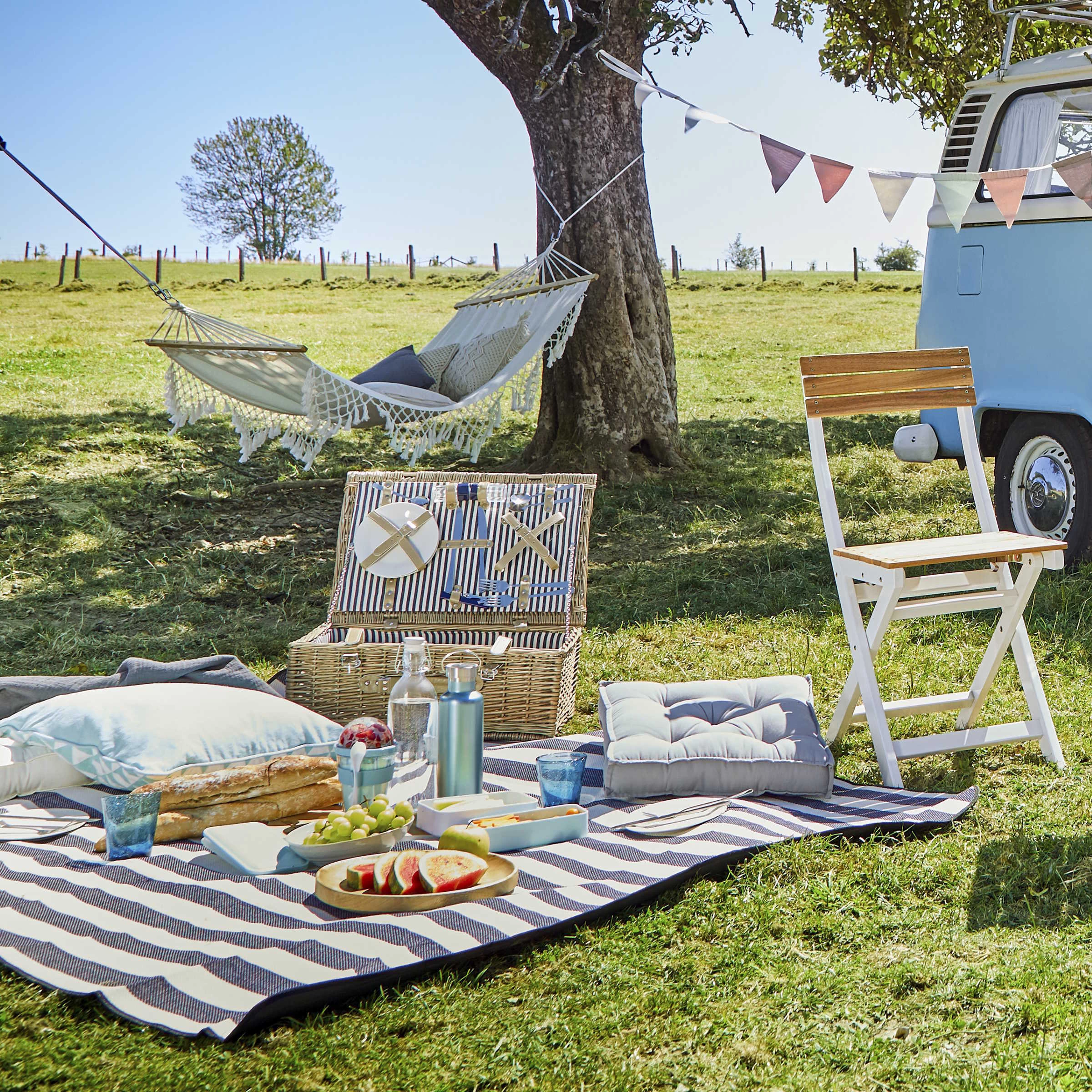 Die Umgebung zu Fuß erkunden – das steht gerade hoch im Kurs. Für die Rast zwischendurch nehmen Sie die gestreifte Wanderlust Picknickdecke mit. Neben einem praktischen Tragegurt bietet sie eine beschichtete, wasserabweisende Unterseite, so dass Sie auch auf Wiesen und im Wald geschützt sitzen. Bei Bedarf lässt sich die Picknickdecke auf 30°C waschen. Weitere Varianten erhältlich.