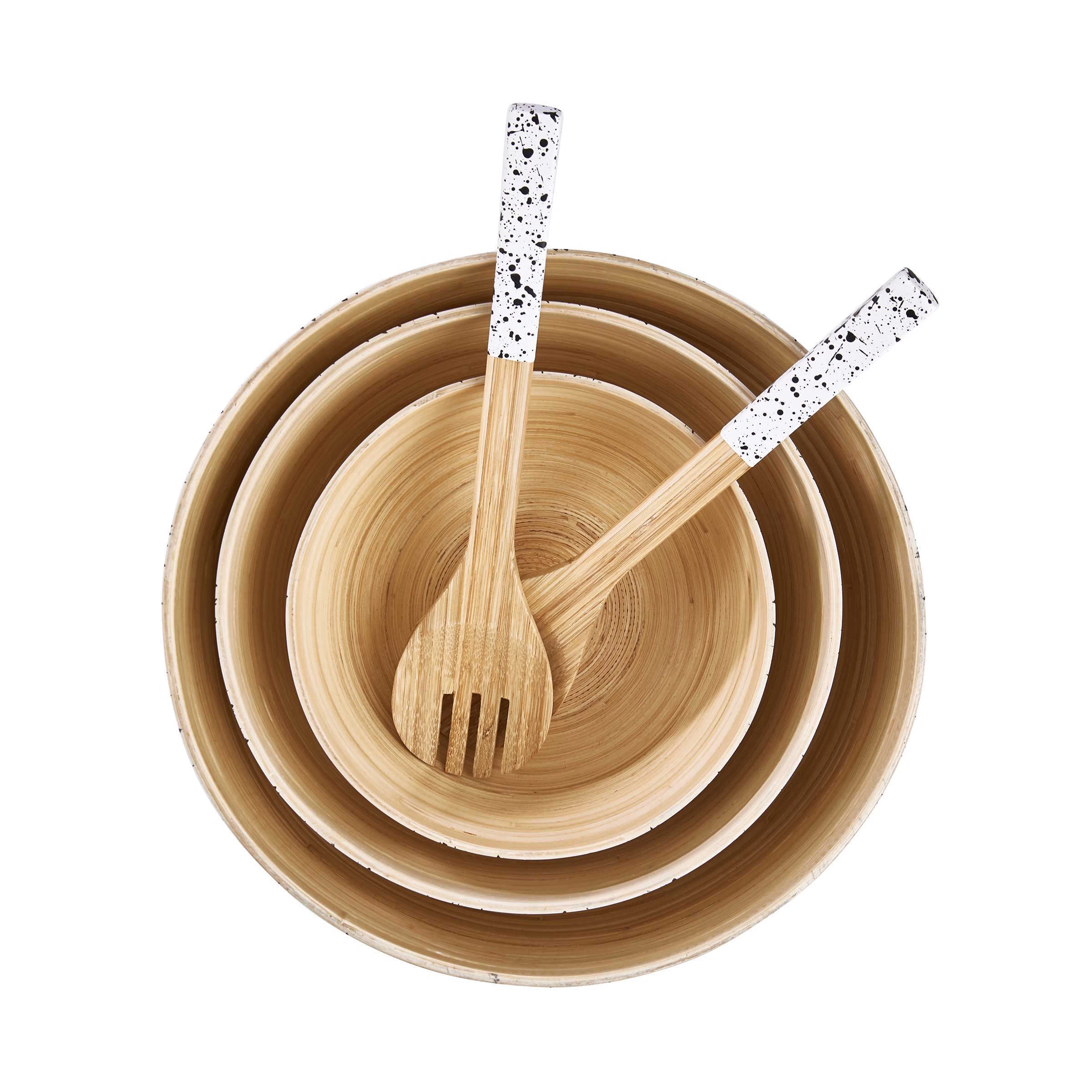 Ob mit Grünzeug und Gemüse, Rohkost oder Früchten: Knackig frische Salate landen mit dem modernen Bamboo Salatbesteck mit lackierten Griffen und naturfarbenem Bambus am schönsten auf dem Teller – oder, noch besser, in der passenden Bamboo Schale. Die ist in verschiedenen Farben und Größen erhältlich, zudem gibt es das Bamboo Salatbesteck in weiteren Varianten. So bringen Sie immer und für alle den richtigen Mix auf Ihren gedeckten Tisch.