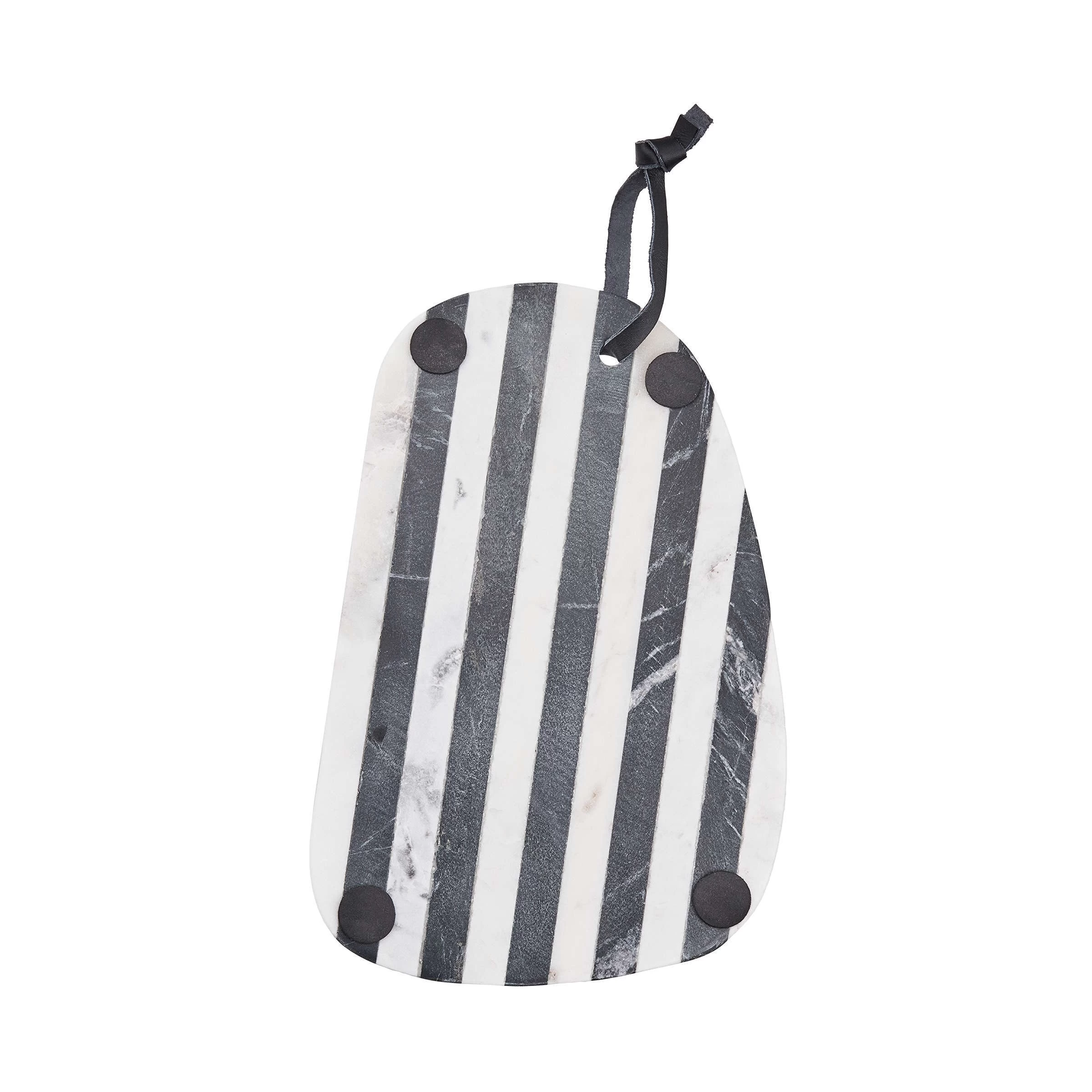 Nach dem Vorbild der Natur: Das Marble Schneidebrett aus echtem Marmor in Grün kommt ohne Ecken und Kanten in organischer Form daher. Der edel gemaserte Stein und die hochwertige Optik werden durch das Lederband noch unterstrichen. Deshalb darf das Schneidebrett auch nach dem Kochen oder Essen gerne noch dekorativ auf dem Tisch oder auf der Arbeitsfläche liegen bleiben.