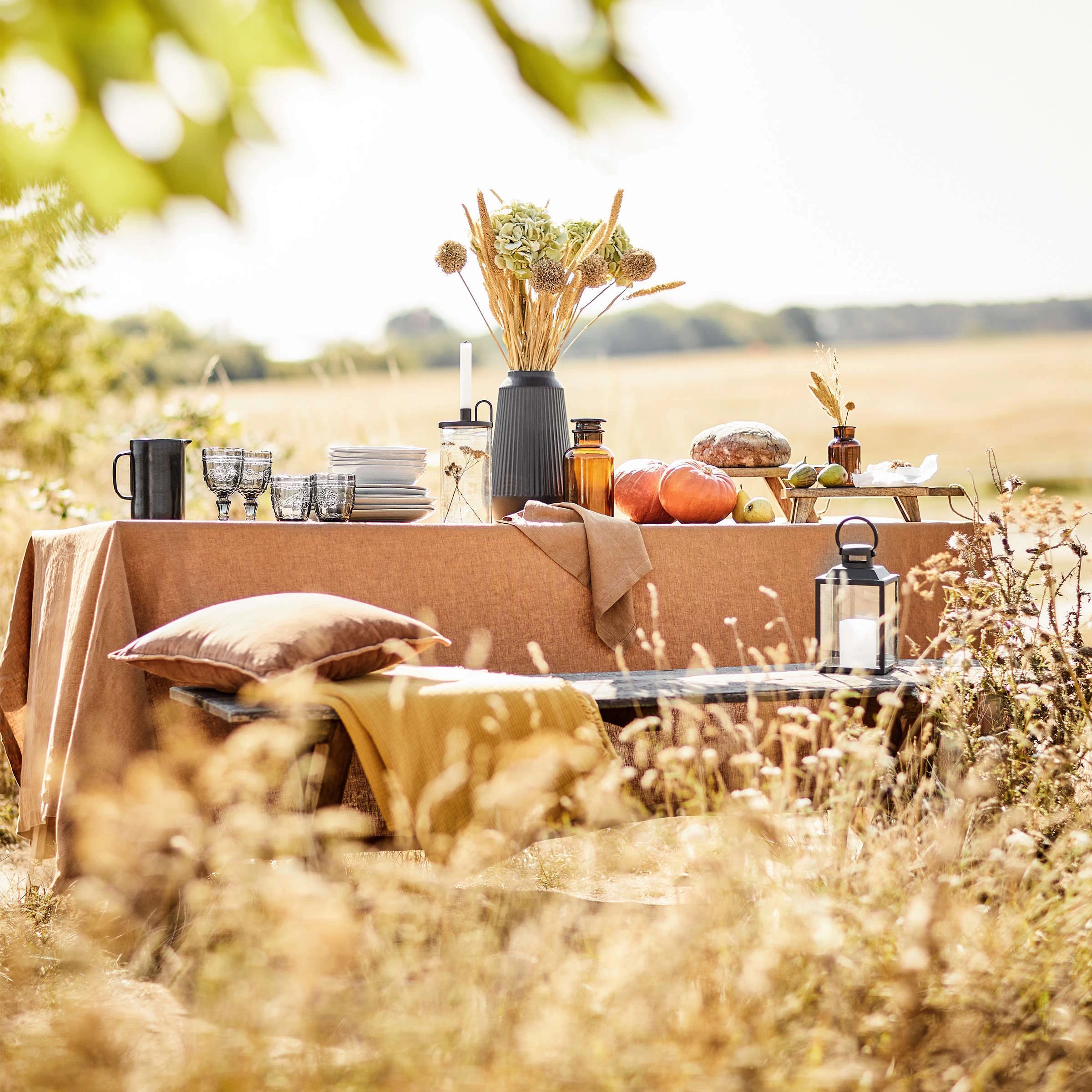 Schön schlicht: Bei der Riga Leinen Serviette kommen das natürliche Material und die Struktur der Naturfaser besonders zur Geltung. Als Kontrast dazu dürfen Besteck, Geschirr und polierte Gläser gerne auf dem gedeckten Tisch glänzen. Passende Tischläufer und Tischdecken in verschiedenen Farben erhältlich.