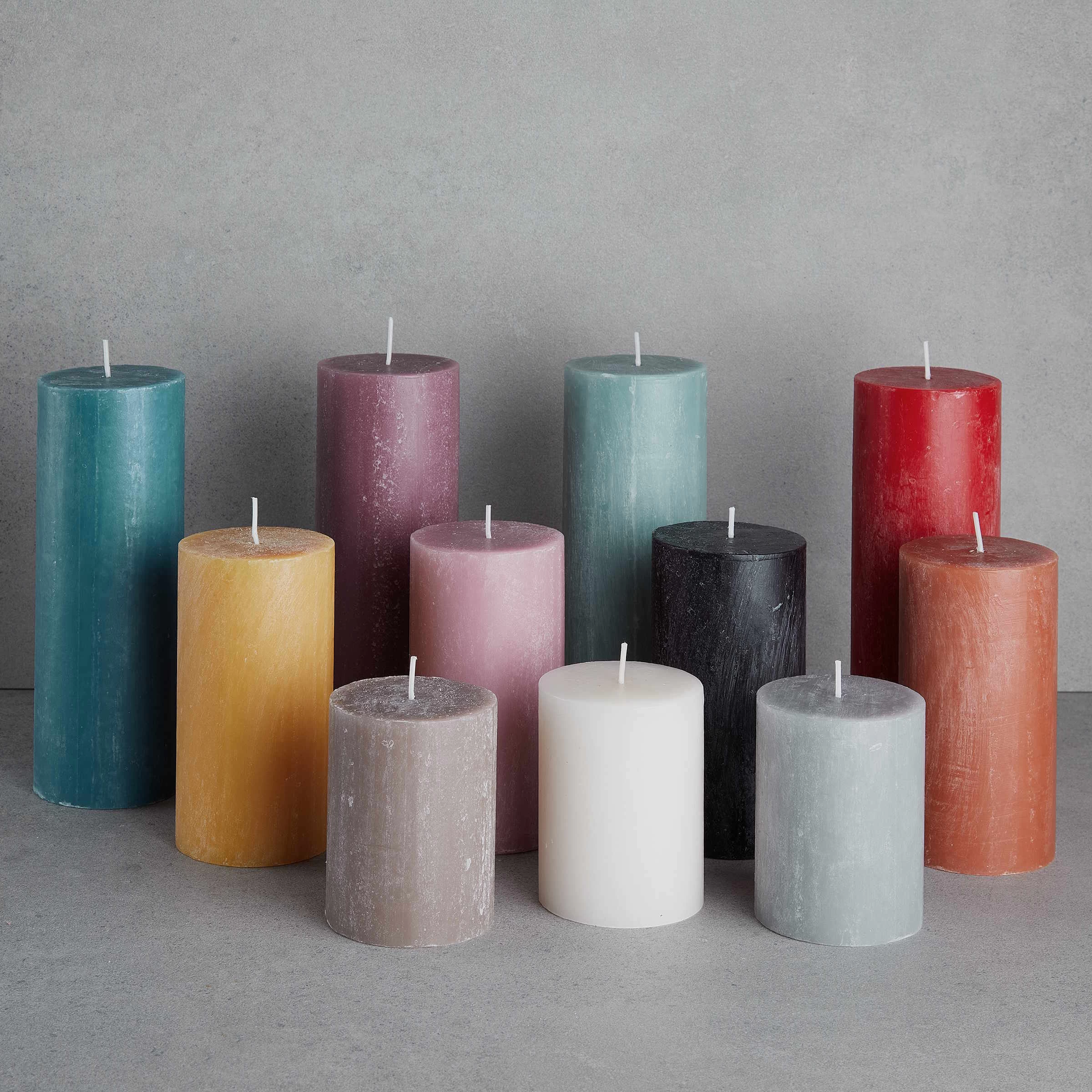 Eine Kerze mit Charakter: Die antik wirkende, matte Oberfläche mit ihren typischen weißen Spuren erinnert an die traditionelle Kerzenherstellung und macht jede Kerze zu einem Unikat. Brennzeit ca. 40 Stunden, durchgefärbt. In weiteren Farben und in einer weiteren Größe erhältlich.