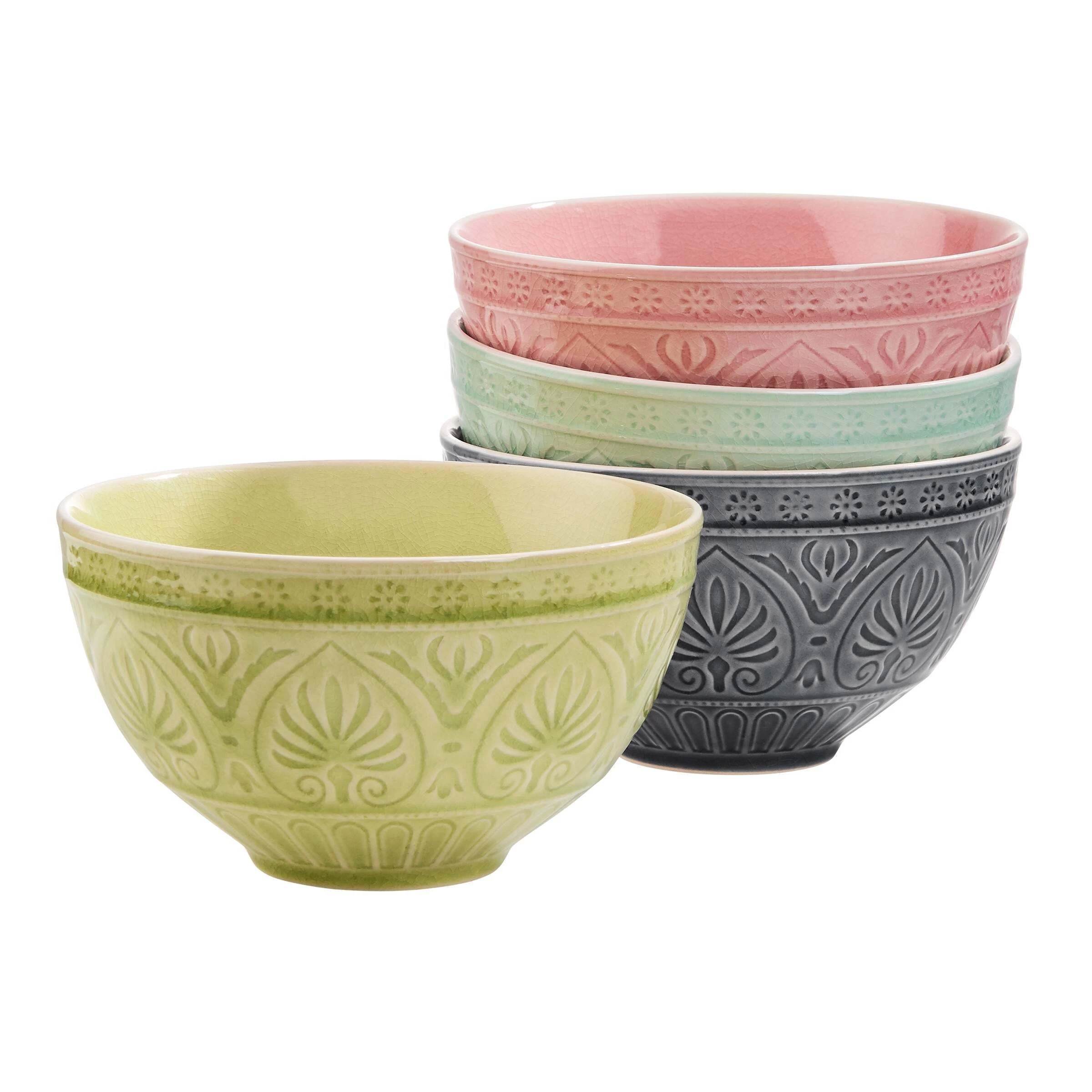 Scharfe Gewürze und kräftige Aromen passen besonders gut zu dieser exotischen Sumatra Schalen aus Steinzeug. Das traditionelle Reliefdekor hebt sich optisch sanft unter der glatten Glasur der großen, bunten Schale ab. Die Suppenschale bietet einen echten Blickfang auf Ihrem gedeckten Tisch und lässt südostasiatischen Flair aufkommen.