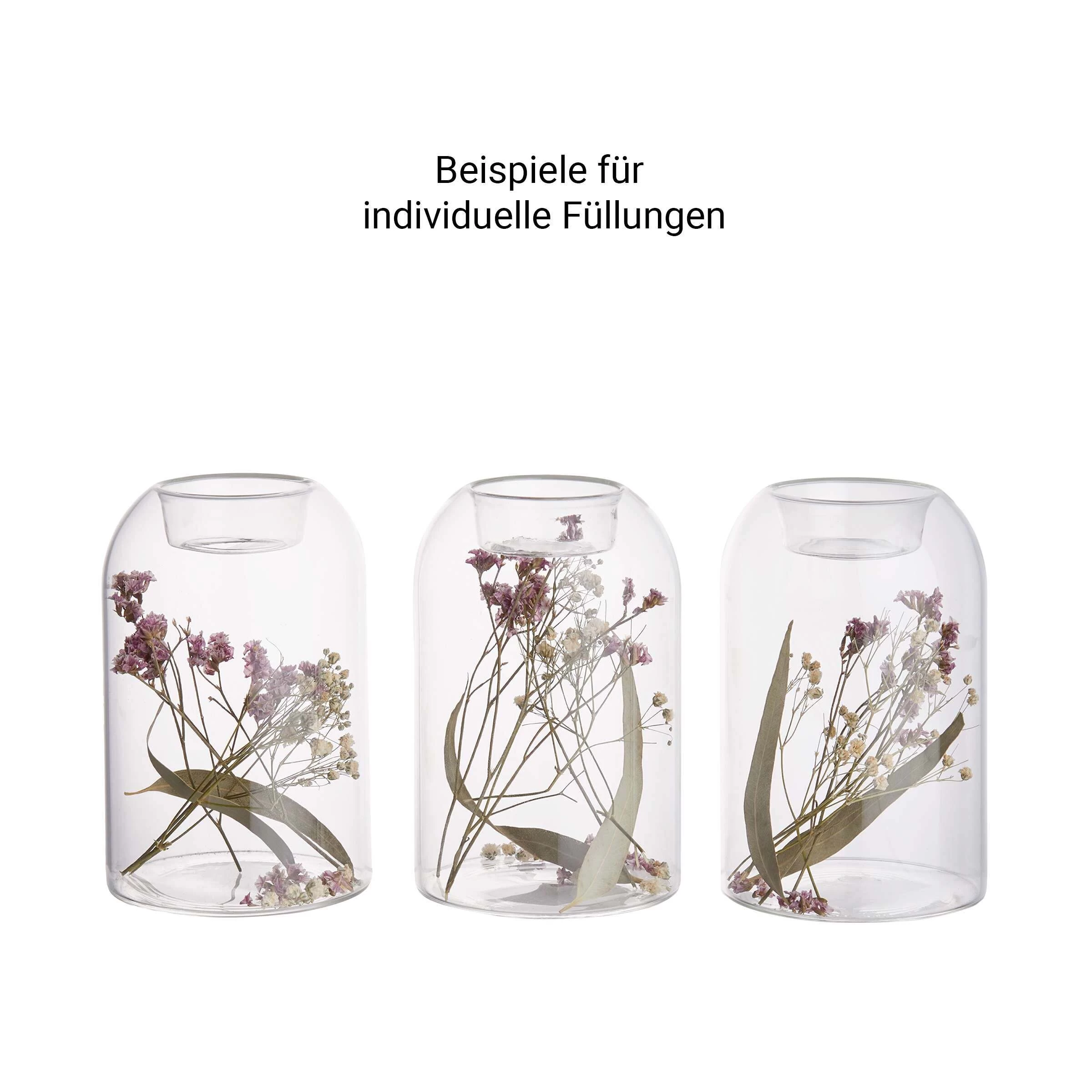 Weil Sie von wunderschönen Trockenblumen gar nicht genug bekommen können, sind Sie Feuer und Flamme für den dekorativen Flower Market Teelichthalter im 2er Set aus Glas. In seinem Inneren präsentieren sich dekorative Trockenblumen (individuell gefüllt), und zusammen mit einer hellen Kerze entsteht ein romantisch-moderner Look.