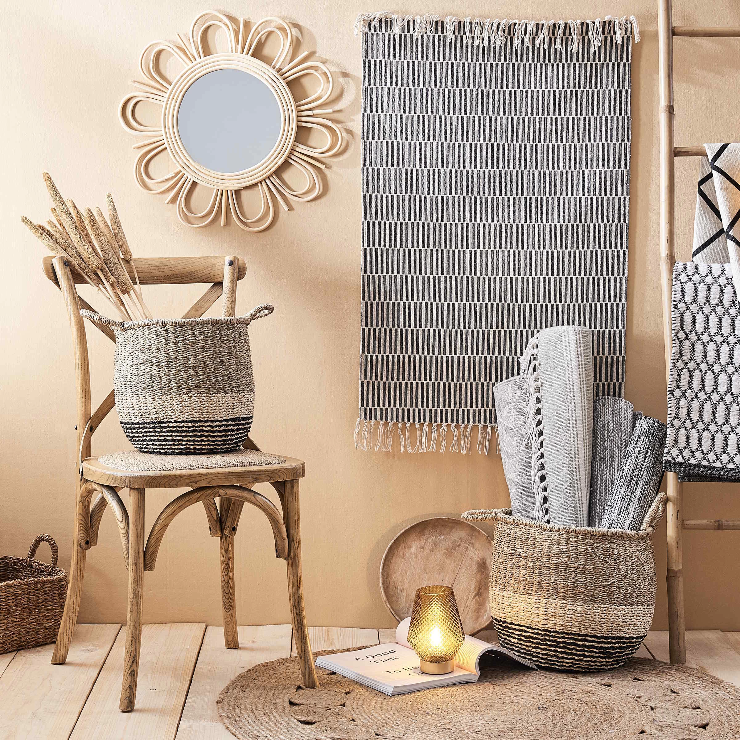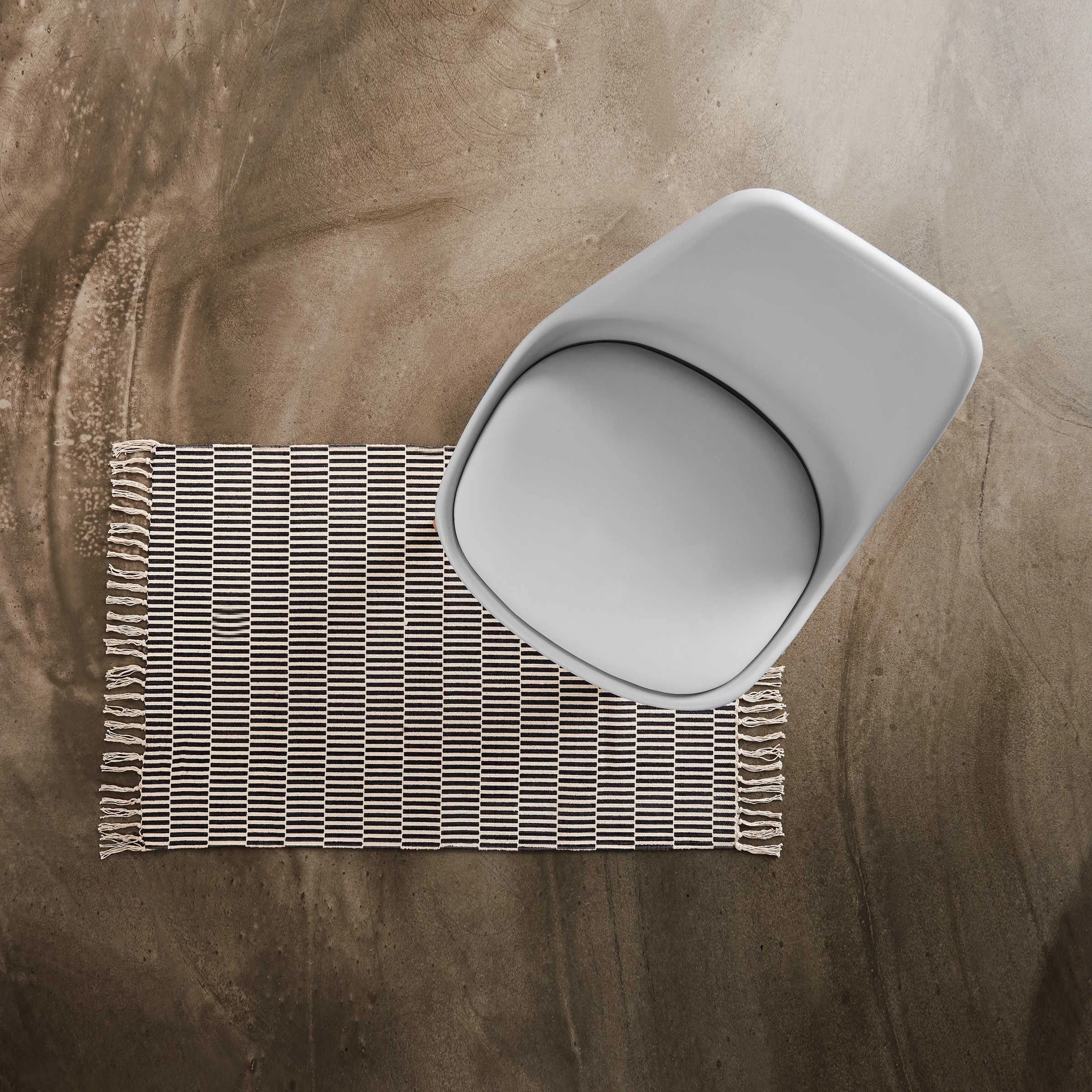 Der Silent Dancer Baumwoll-Teppich in Schwarz-Creme mit Fransen gibt Ihnen einen schönen Grund, öfter barfuß durch Ihr Leben und Zuhause zu tanzen. Ob im Wohnzimmer, im Flur oder Schlafzimmer, zu Musik oder den Melodien in Ihrem Kopf. Weitere Varianten und Größen erhältlich.