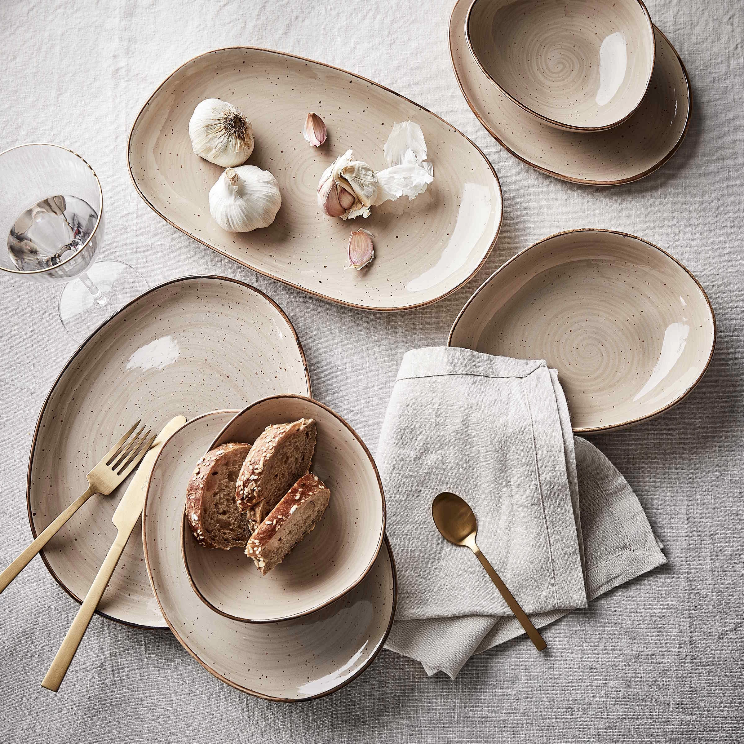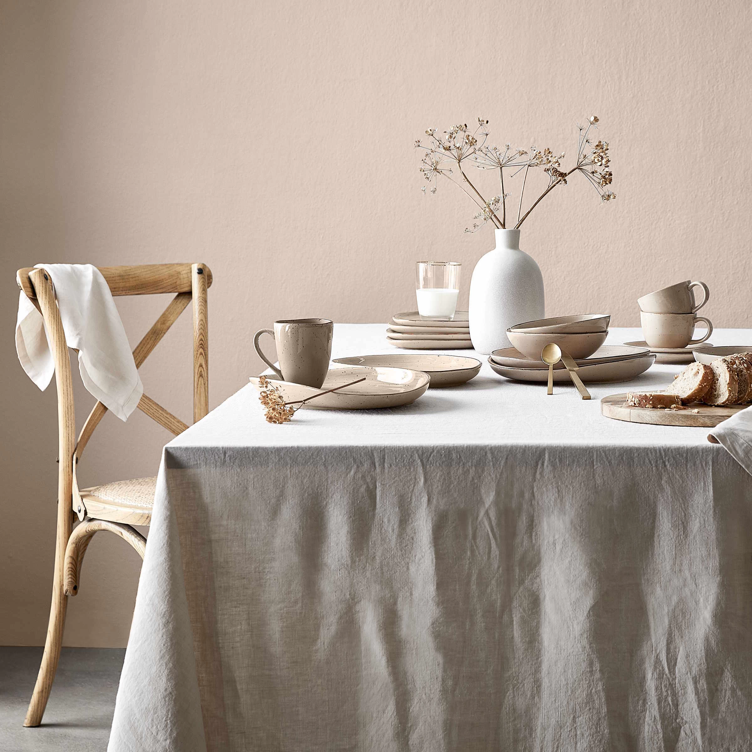 Schön schlicht: Bei der Riga Leinen Tischdecke kommen das natürliche Material und die Struktur der Naturfaser besonders zur Geltung. Als Kontrast dazu dürfen Besteck, Geschirr und polierte Gläser gerne auf dem gedeckten Tisch glänzen. Passende Tischläufer und Servietten in verschiedenen Farben erhältlich.