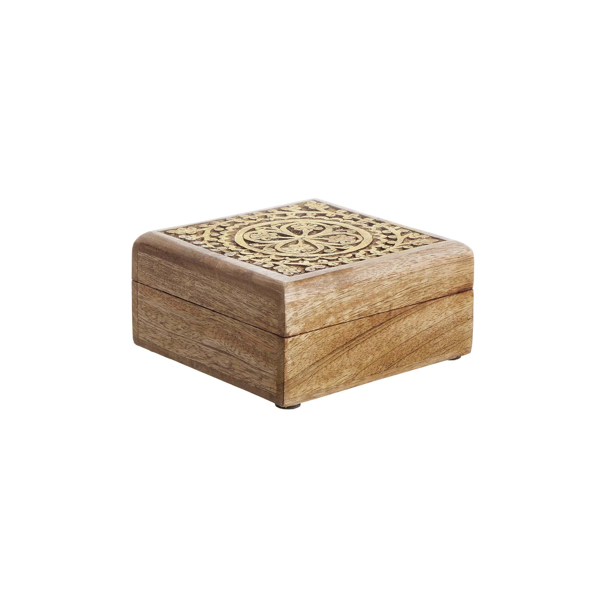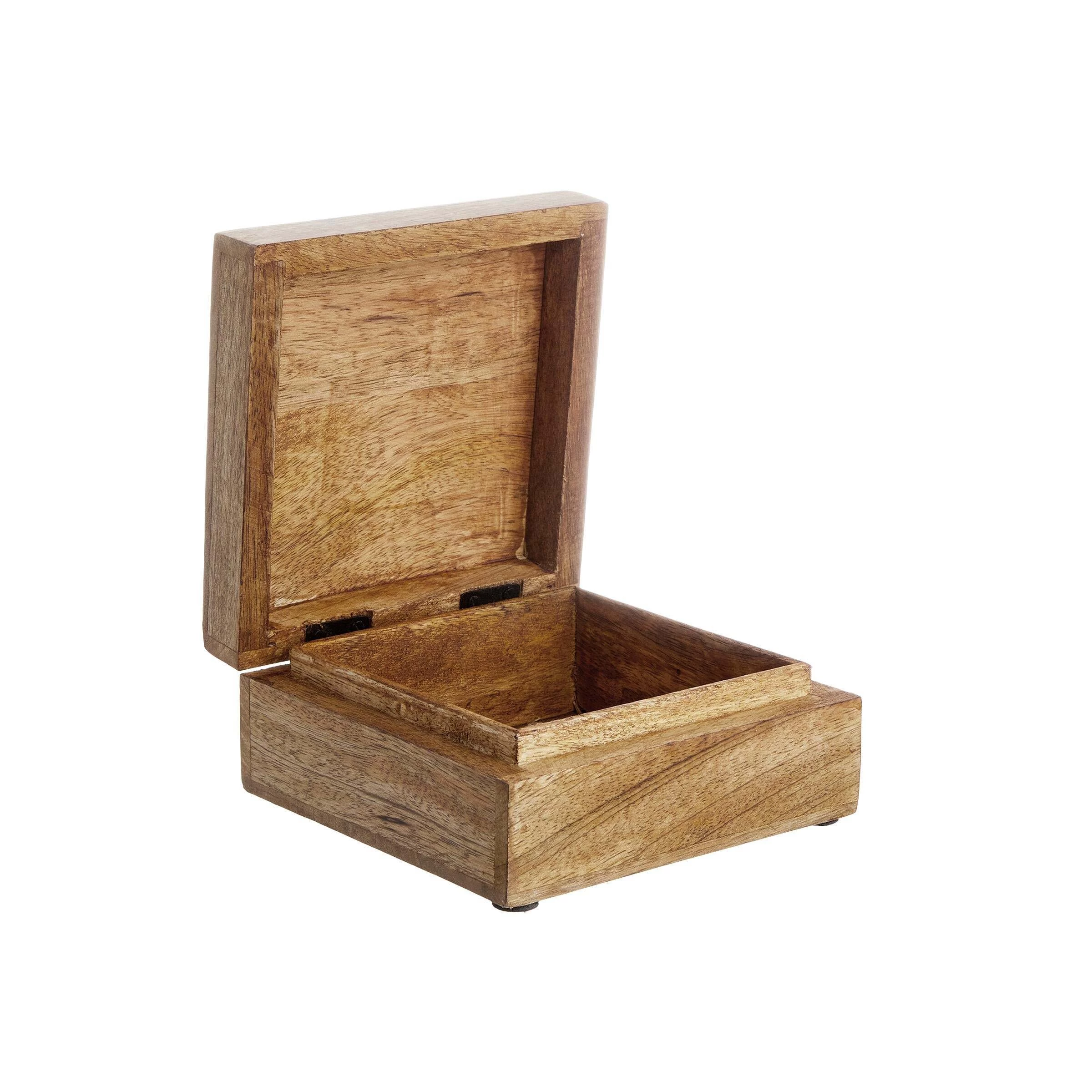 Sie gehen auf Schatzsuche, um ein hübsches Detail für Ihr Zuhause zu entdecken – und stoßen auf die quadratische Treasure Truhe mit Schnitzerei. Diese kunstvoll gearbeitete Truhe aus warmem Mangoholz ziert z. B. Ihren Couch- oder Beistelltisch, oder sie setzt sich auf Ihrem Schminktisch oder Nachtschränkchen dekorativ in Szene. Ganz nebenbei dient sie dabei zur Aufbewahrung von z. B. Fotos, Schmuckstücken oder anderen Kleinigkeiten. In einer weiteren Variante erhältlich, ideal auch zum Kombinieren.