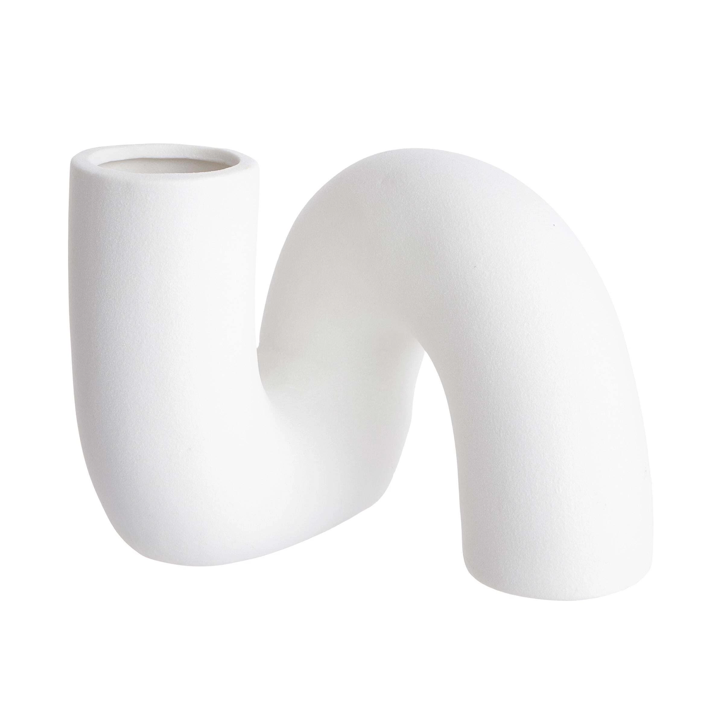 Im Leben führen manchmal verschlungene Wege ans Ziel, und auch bei der Pipe Vase aus weißer Keramik sind es die Kurven und Bögen, die das Design vollenden. Die moderne Vase lässt sich als Deko-Vase, mit einzelnen Blüten oder Zweigen oder mit Trockenblumen wunderbar in Szene setzen, etwa auf dem gedeckten Tisch oder einer Kommode.